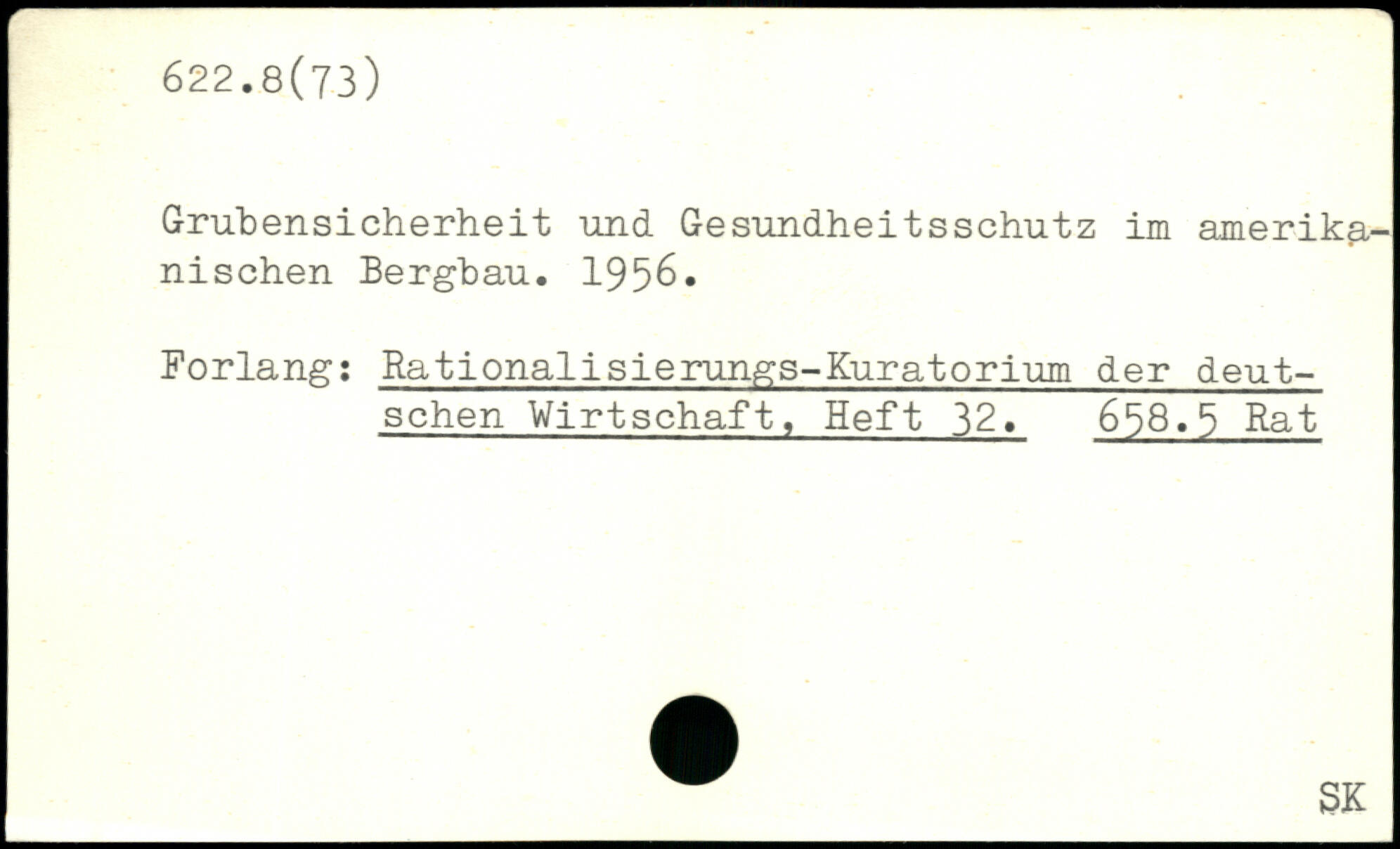 Grubensicherheit und Gesundheitsschutz im amerikanischen Bergbau. 1956. Forlang: Rationalisierungs-Kuratorium der deutschen Wirtschaft, Heft 32. 658,5 Rat