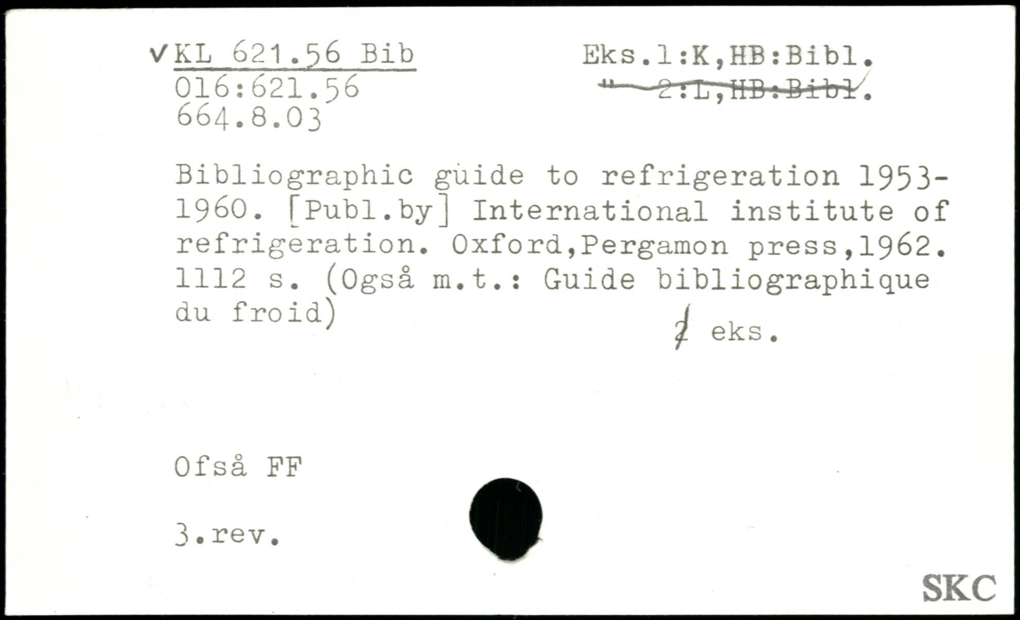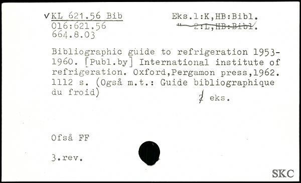 Bibliographie guide to réfrigération 1953-1960.