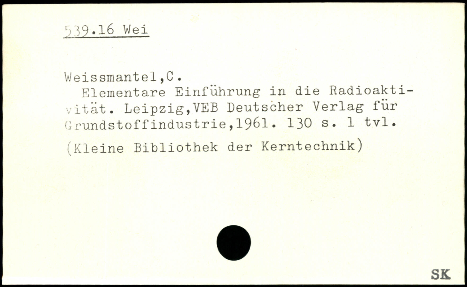 Elementare Einführung in die Radioaktivität. Leipzig,YEB Deutscher Verlag für Grundstoffindustrie,1961.