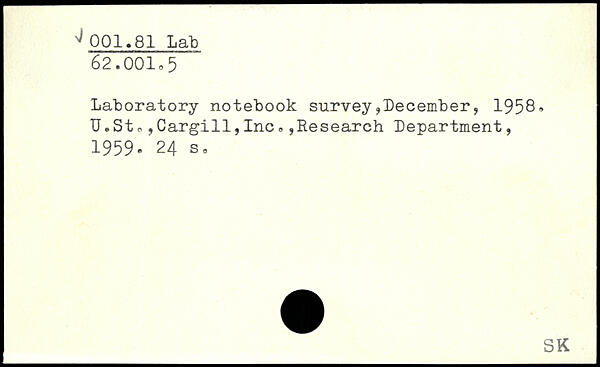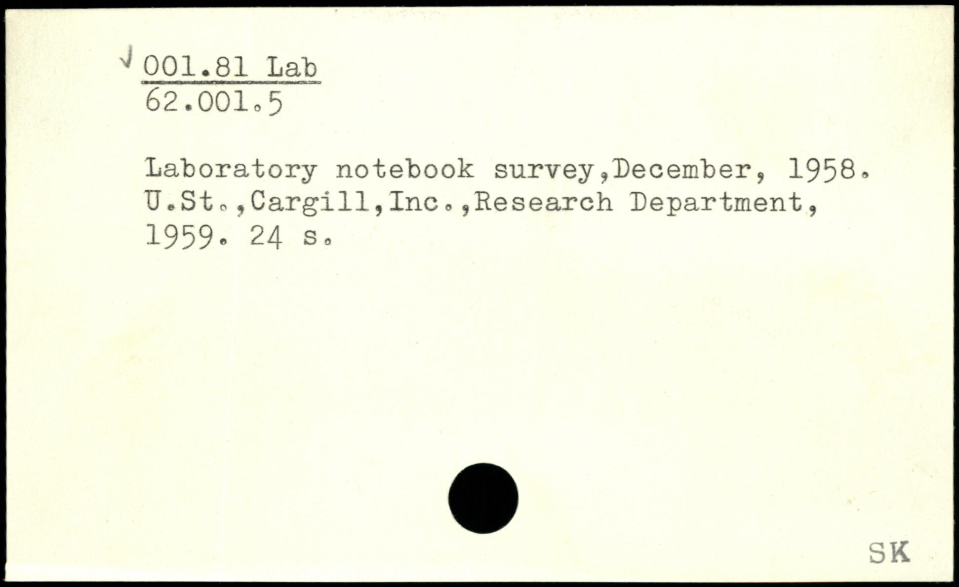 Laboratory notebook survey,December, 1958, U.Sto,Cargill,Inc.,Research Department, 1959. 24 s