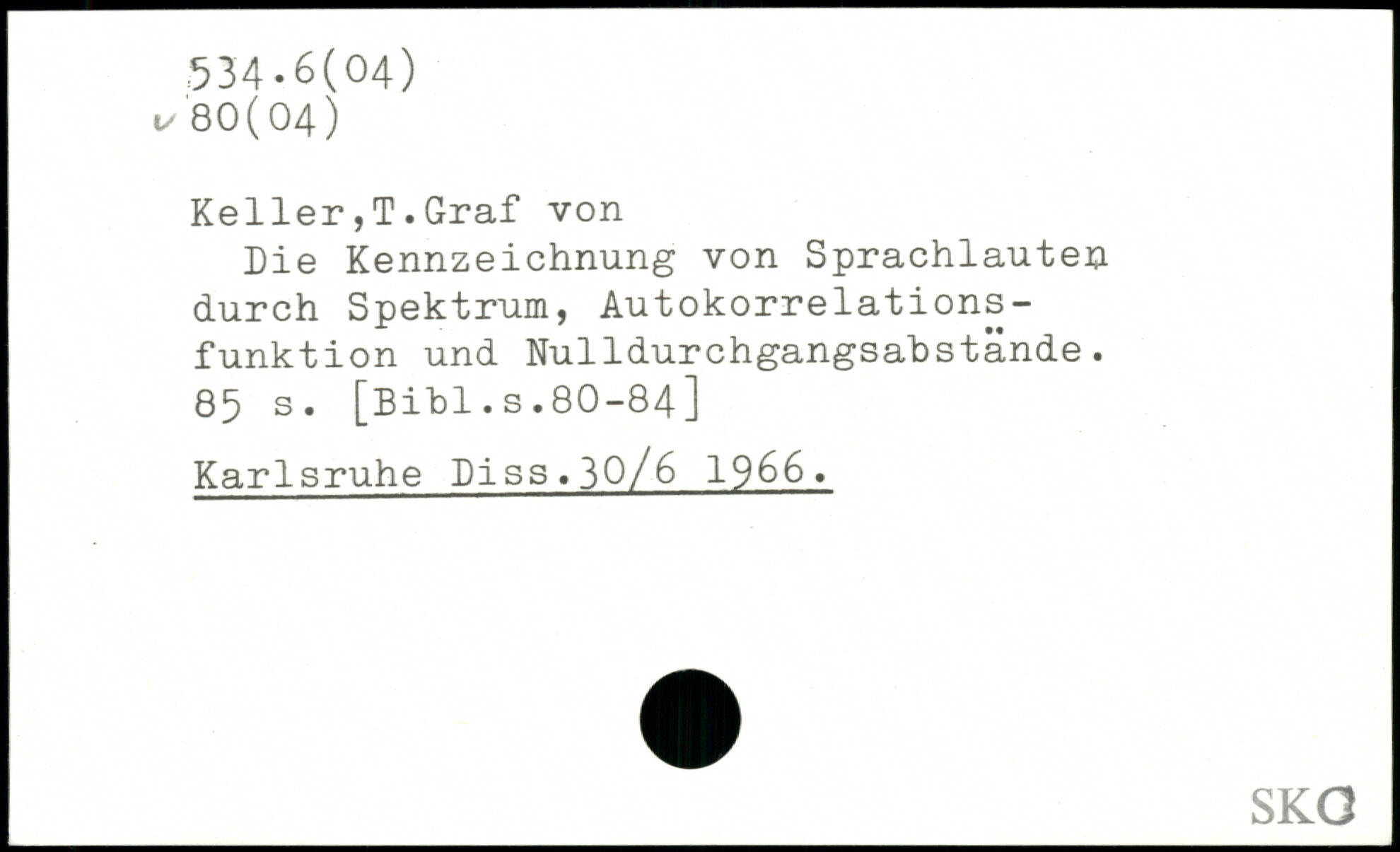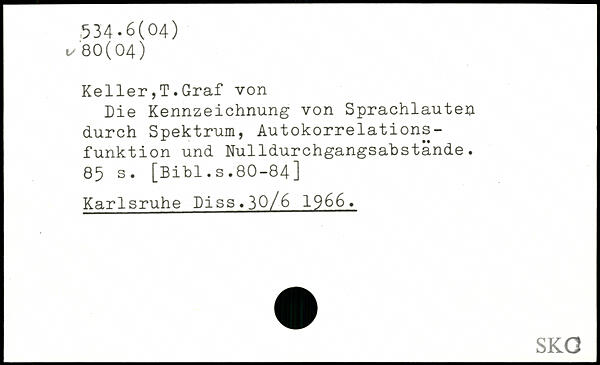Keller,T.Graf von Die Kennzeichnung von Sprachlauten durch Spektrum, Autokorrelationsfunktion und Nulldurchgangsahstände.