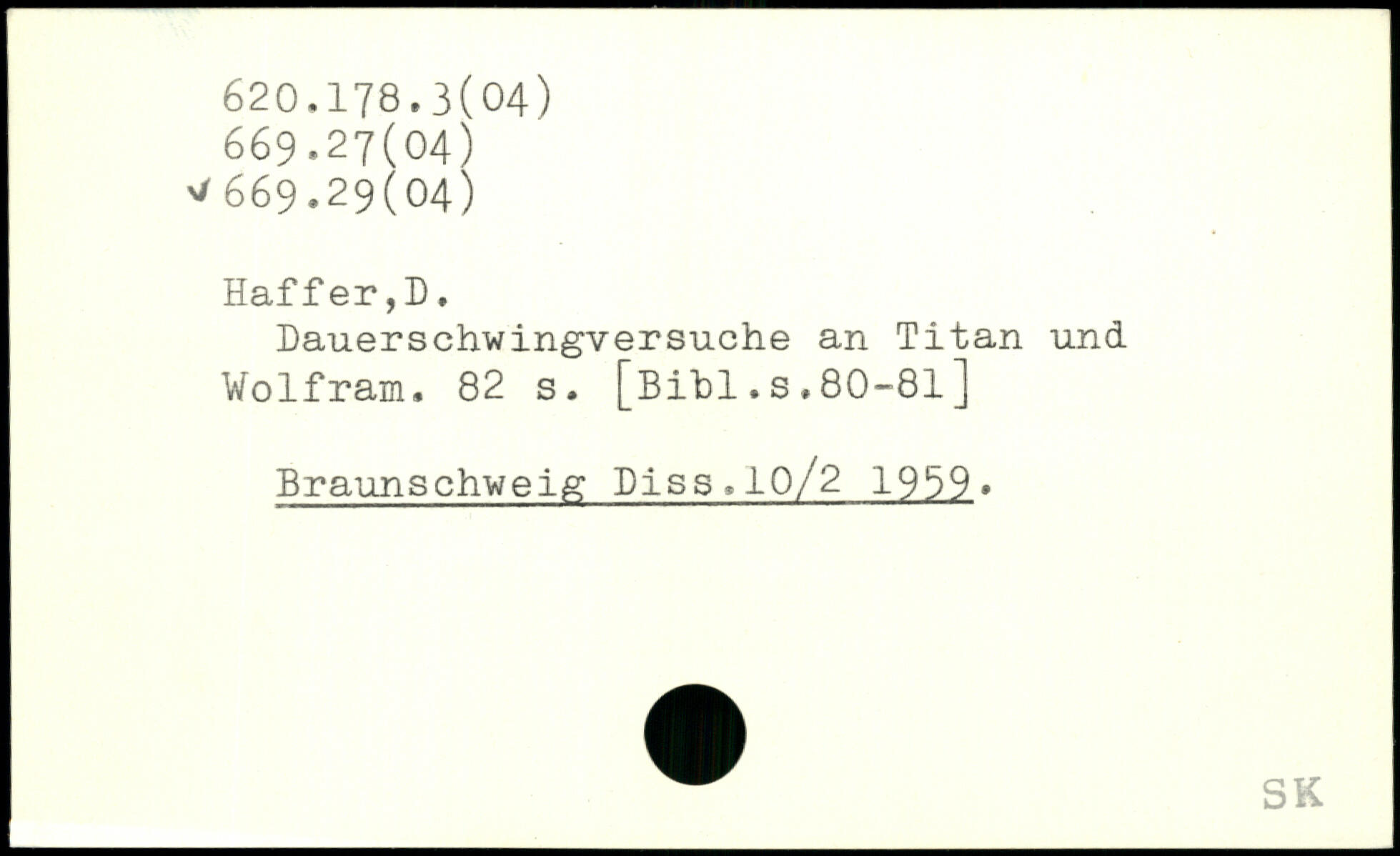 Dauerschwingversuche an Titan und Wolfram.