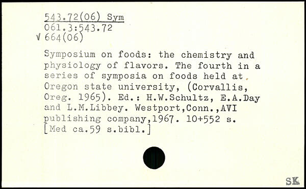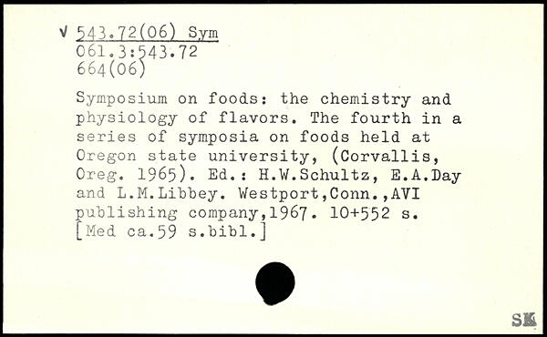 Symposium on foods: the chemistry and physiology of flavors. The fourth in a series of symposia on foods held at , Oregon state university, (Corvallis, Oreg. 1965). Ed.; H.V.Schultz, E.A.Day and L.M.Libbey.