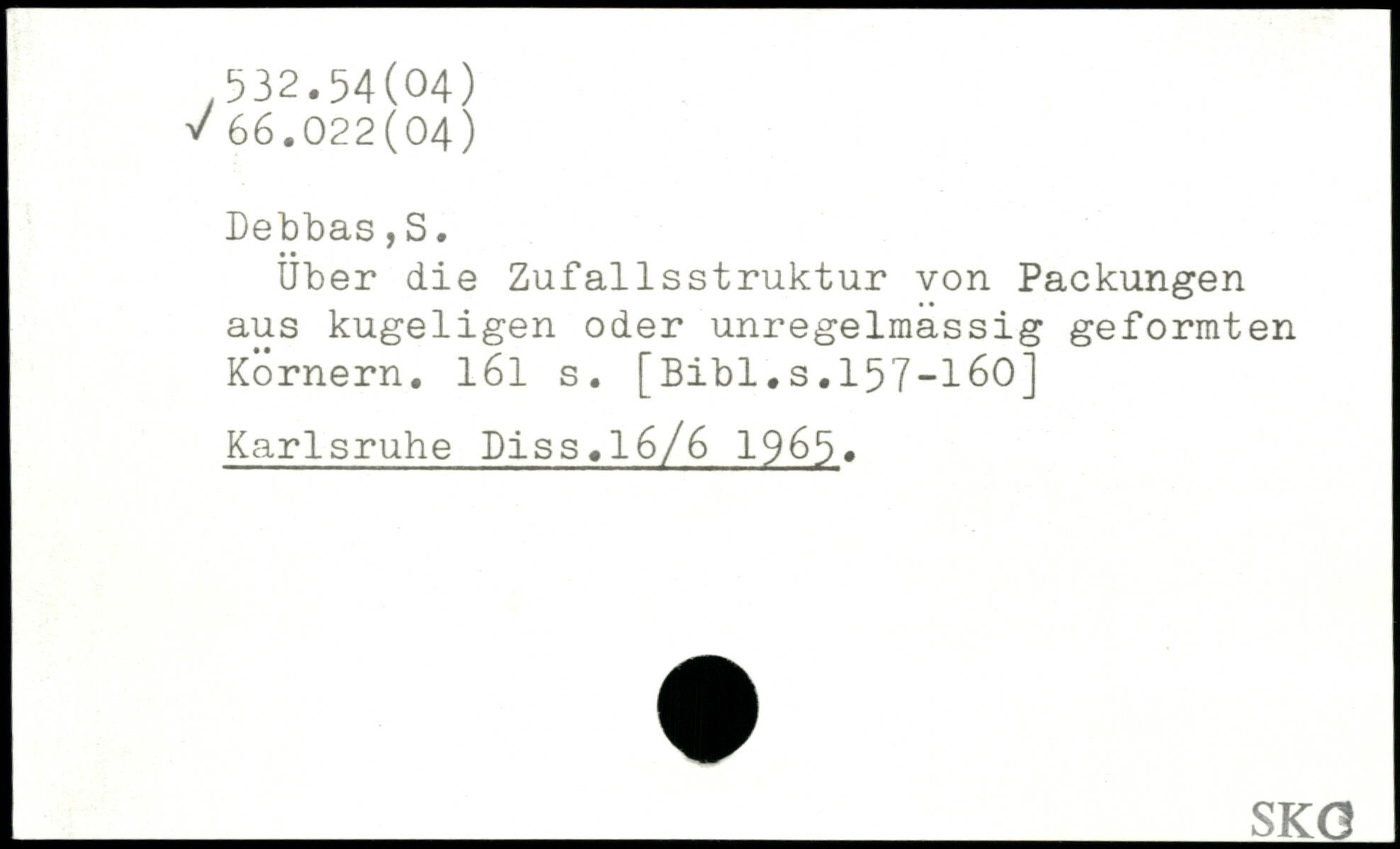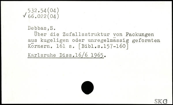 Uber die Zufallsstruktur von Packungen aus kugeligen oder unregelmässig geformten Kornern. l6l s.