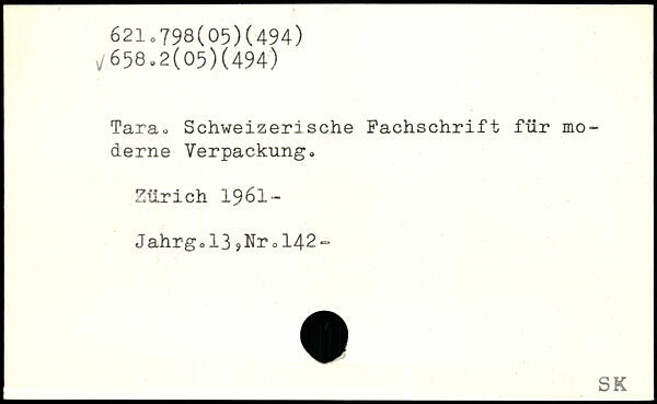 Tara, Schweizerische Fachschrift für moderne Verpackung. Zürich 1961- Jahrgolß ?Nr.142“ _ SK