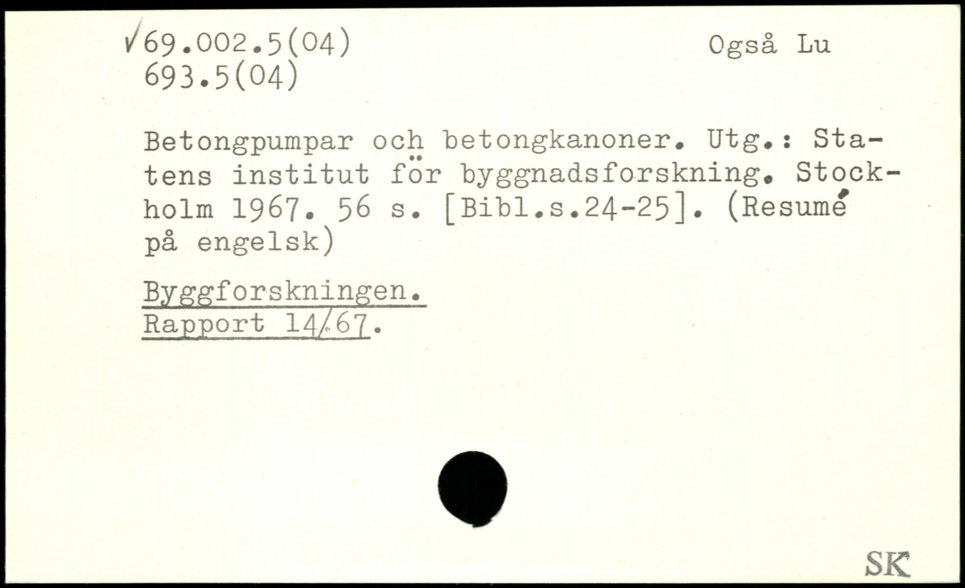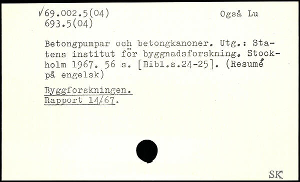 Betongpumpar och betongkanoner. Utg.: Statens institut för byggnadsforskning