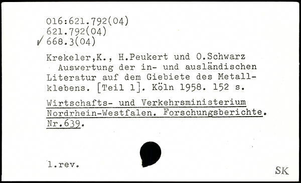 Krekeler,K., H.Peukert und 0.Schwarz Auswertung der in- und ausländischen Literatur auf dem Giebiete des Metallklebens. [Teil lj.