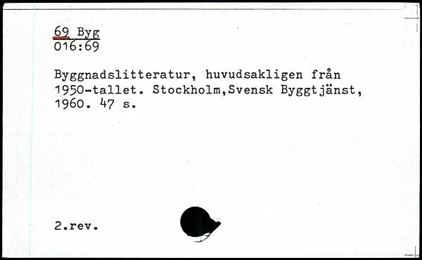 Byggnadslitteratur, huvudsakligen från 1950-tallet.