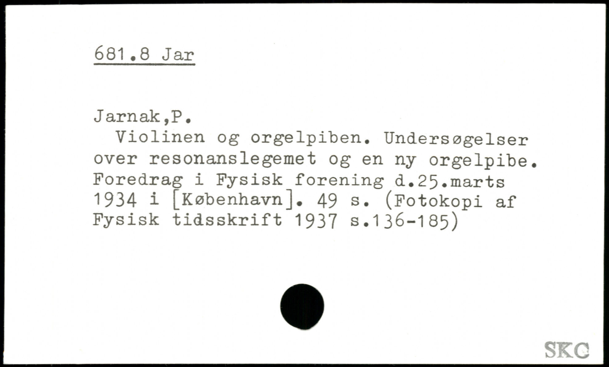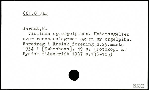 Violinen og orgelpiben. Undersøgelser over resonanslegemet og en ny orgelpibe. Foredrag i Fysisk forening d.25.marts 1934 i [København].