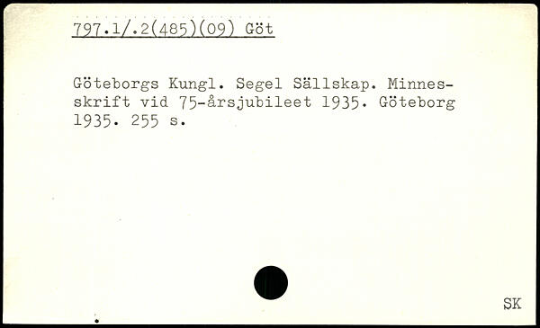Göteborgs Kungl. Segel Sällskap. Minnesskrift vid 75-årsjifbileet 1935. Göteborg 1935-