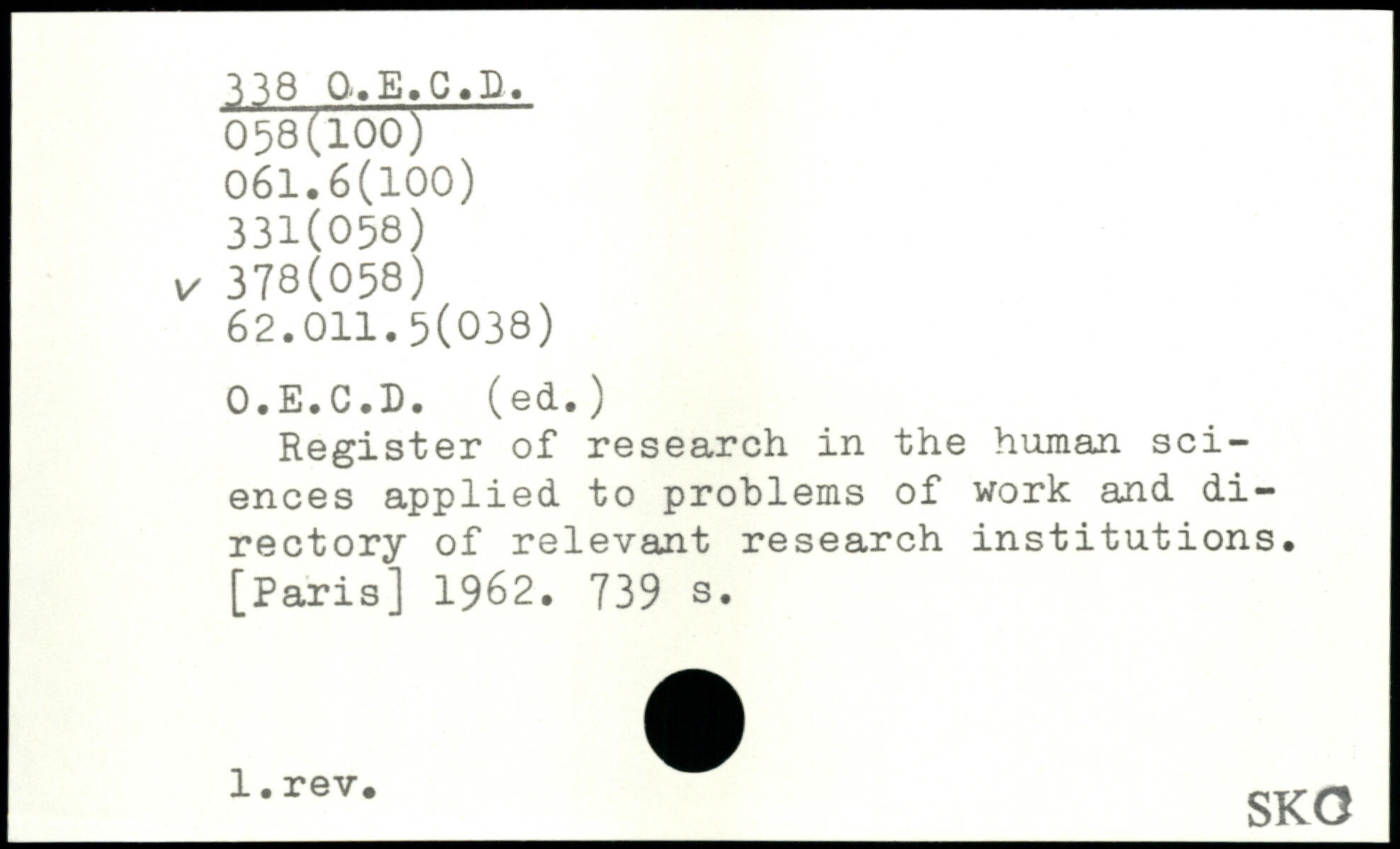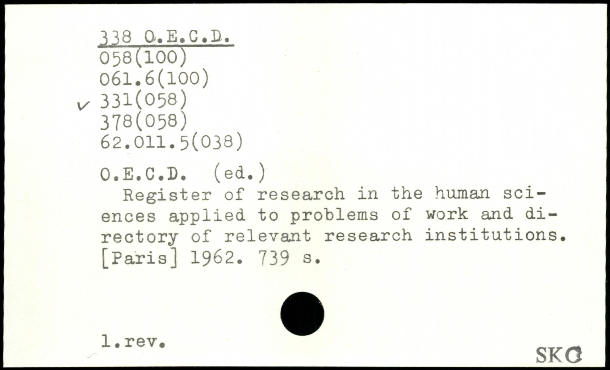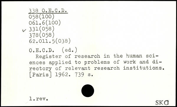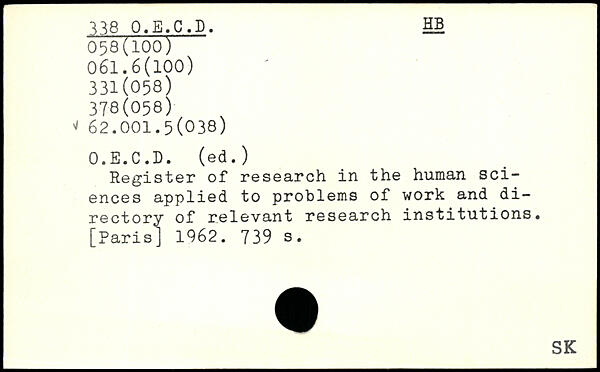 Register of research in the human sciences applied to problems of work and di-rectory of relevant research institutions.