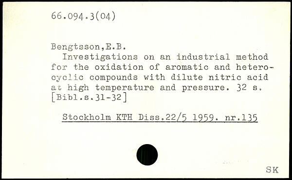 Investigations on an industrial method for the oxidation of aromatic and heterocyclic compounds with dilute nitric acid at high temperature and pressure.