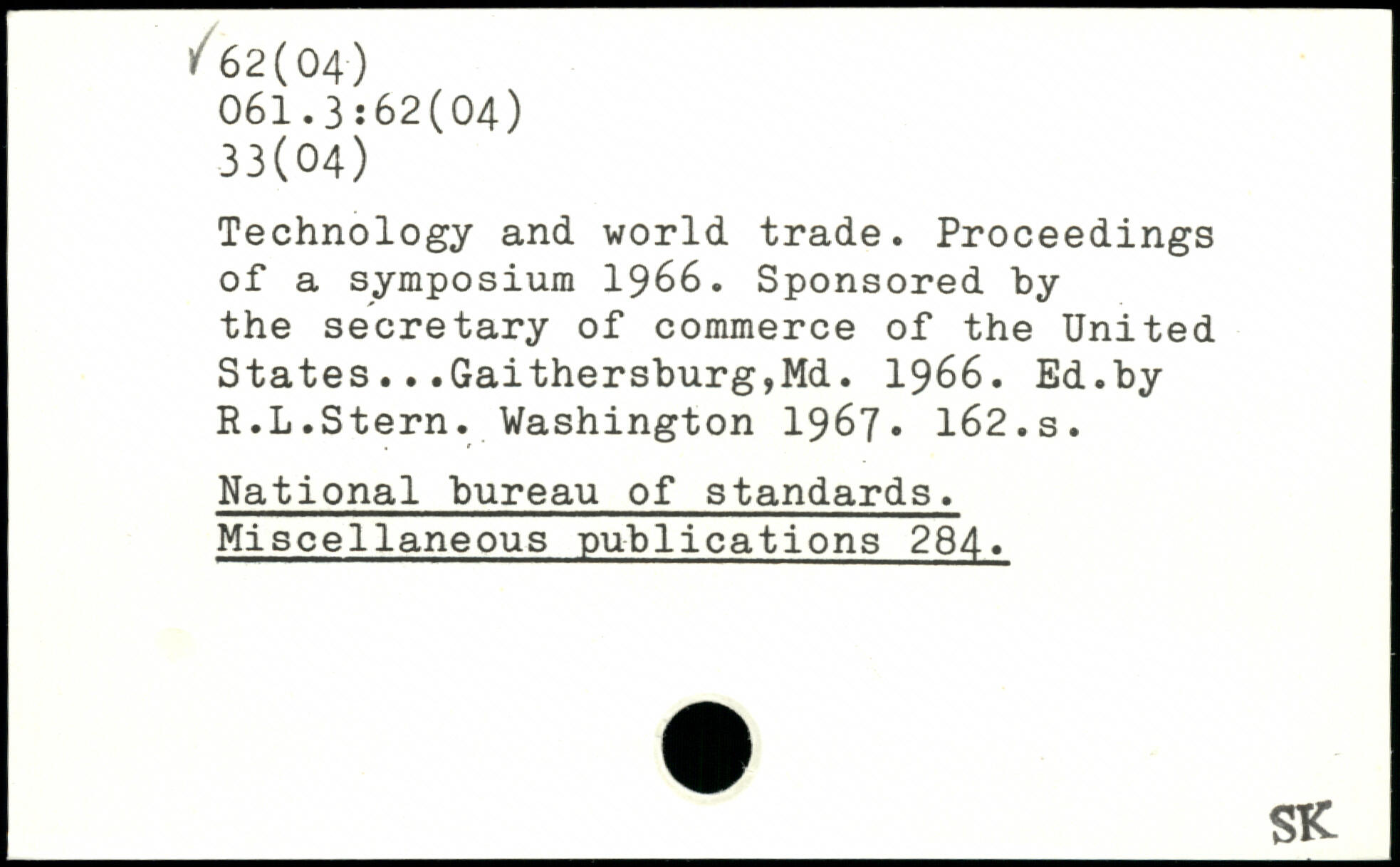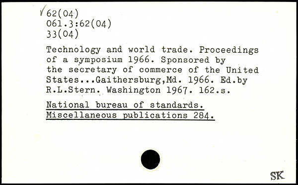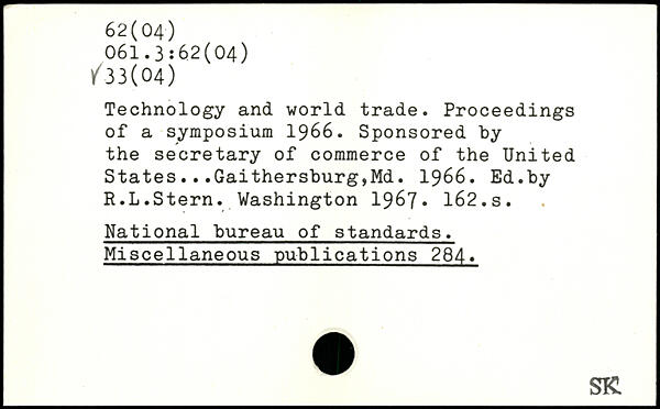 Technology and world trade. Proceedings of a symposium 1966. Sponsored by the secretary of commerce of the United States...Gaithersburg,Md. 1966. Ed.by R.L.Stern.