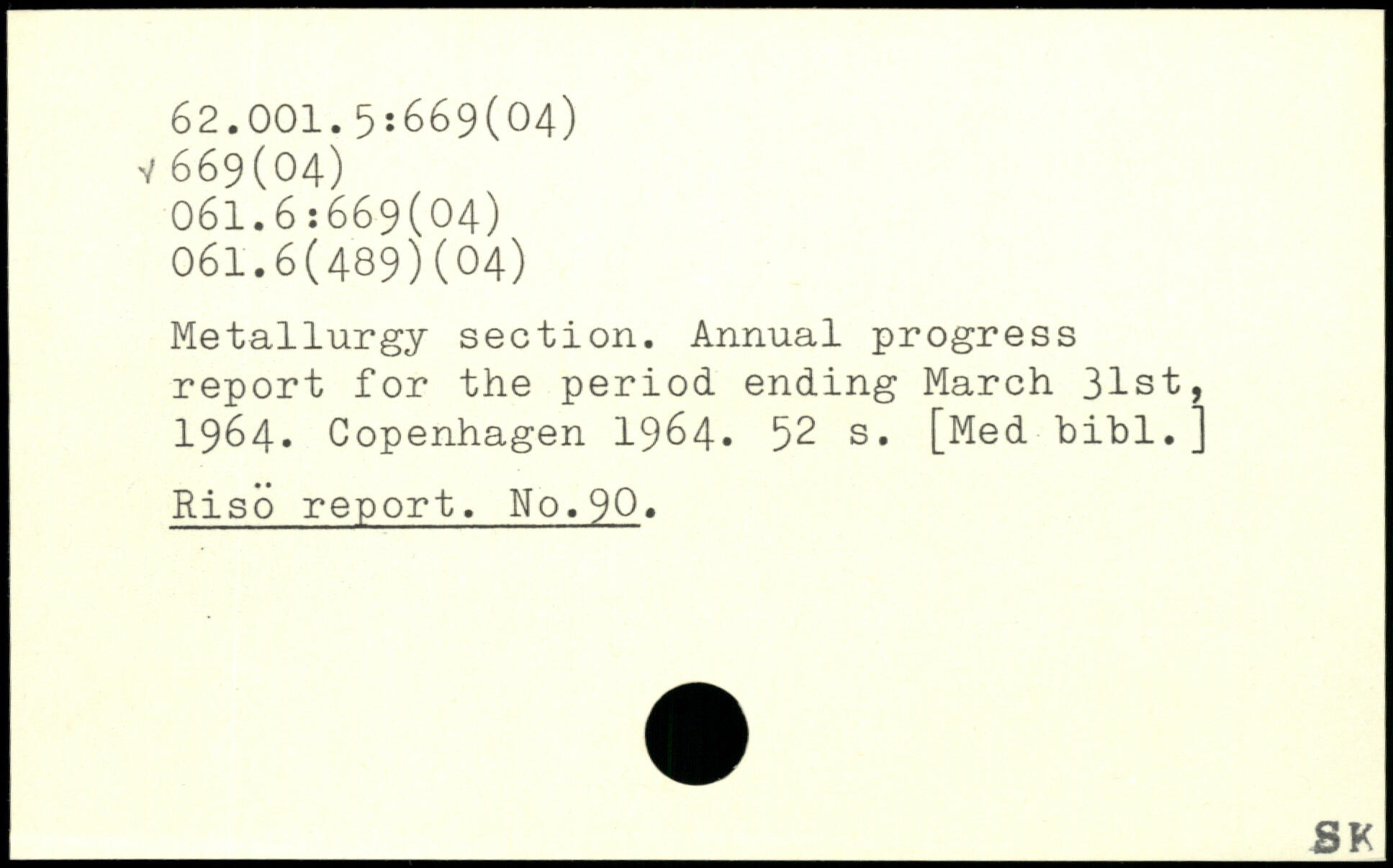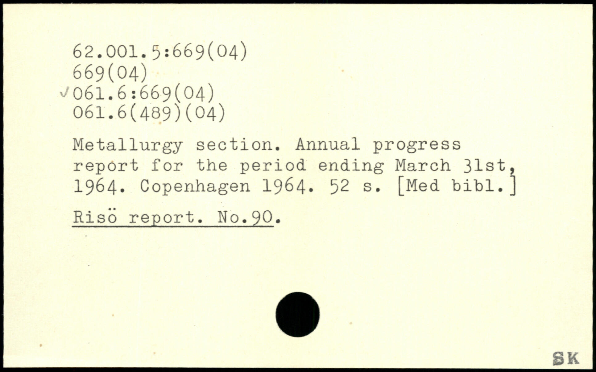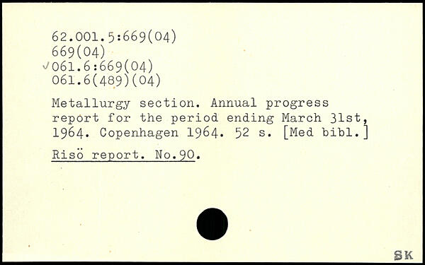 Metallurgy section. Annual progress report for the period ending March 31st, 1964.