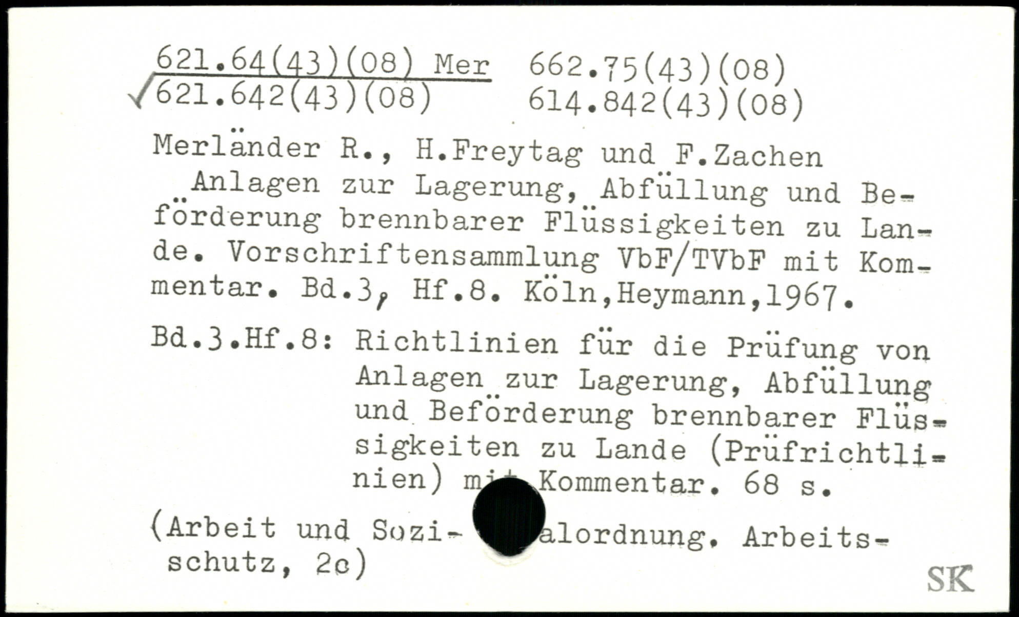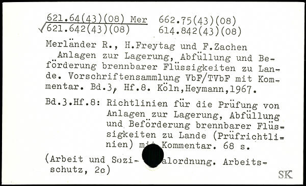 Merlander R., H.Freytag- und F.Zachen ..Anlagen zur Lagerung, Abfüllung und Beförderung brennbarer Flüssigkeiten zu Lande. Vorschriftensammlung VbF/TVbF mit Kom-mentar.