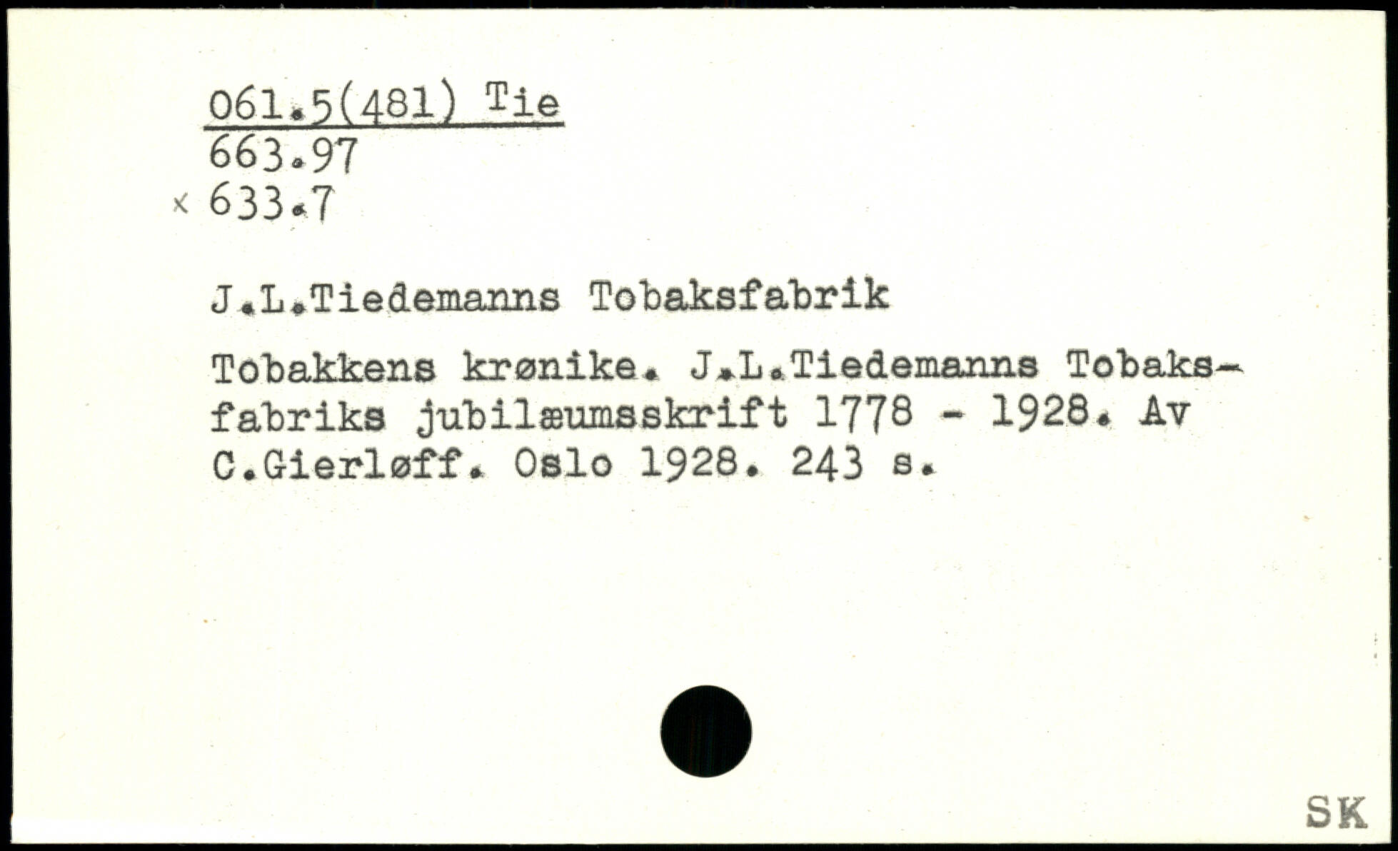 J.L.Tieaemanns Tobaksfabrik Tobakkens krønike. J.L.Tiedemanns Tobaksfabriks jubilæumsskrift 1778. 1928# Av C.Gierløff. Oslo 1928.