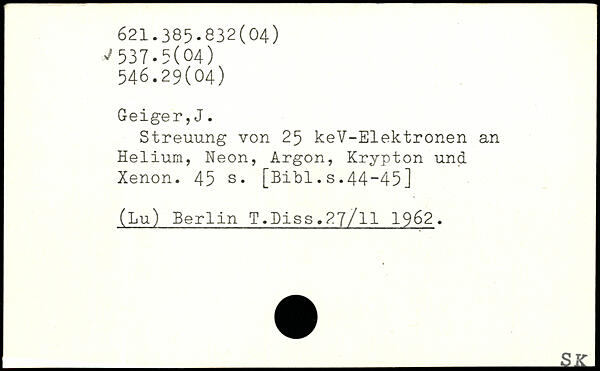Streuung von 25 keV-Elektronen an Helium, Neon, Argon, Krypton und Xenon.
