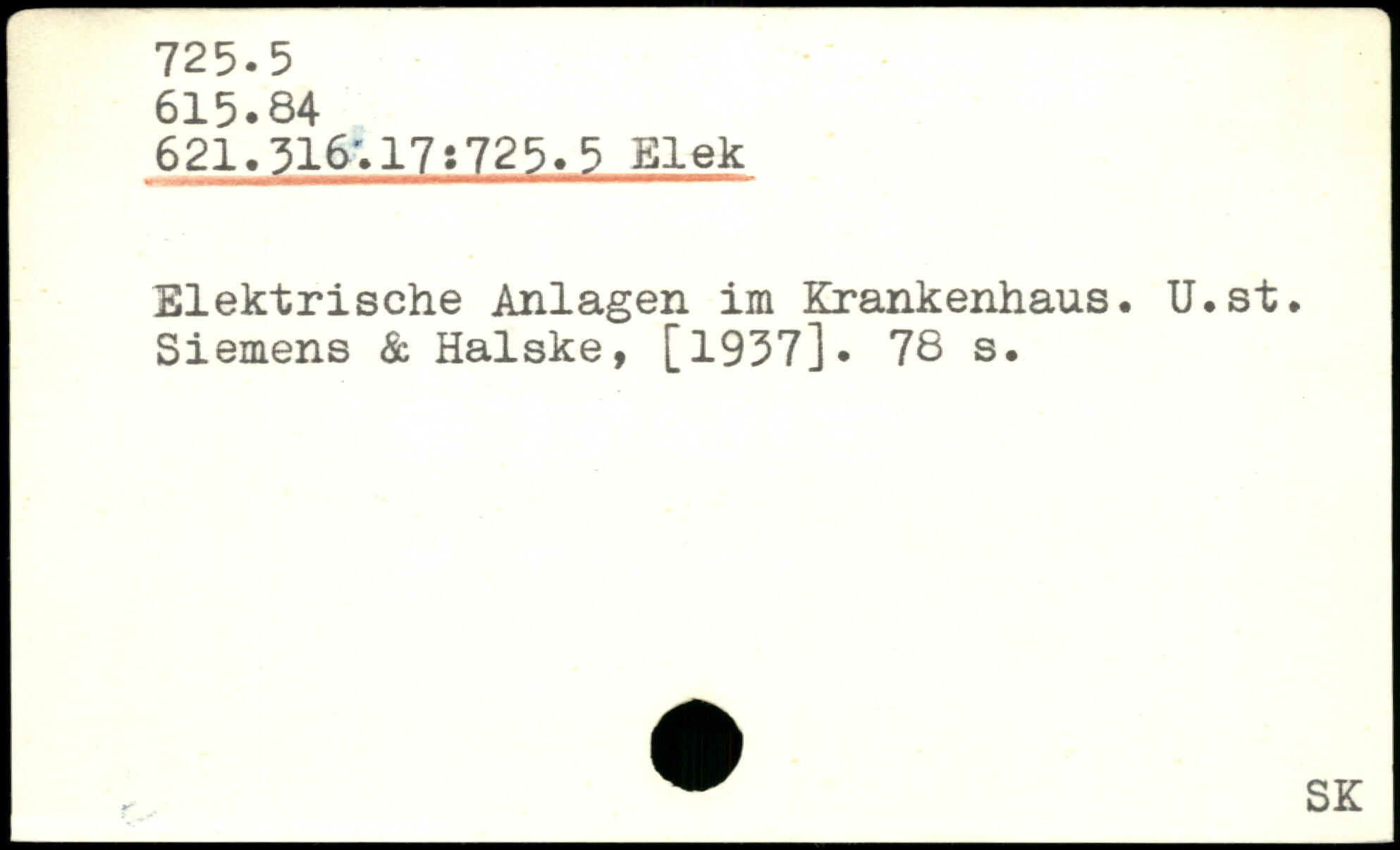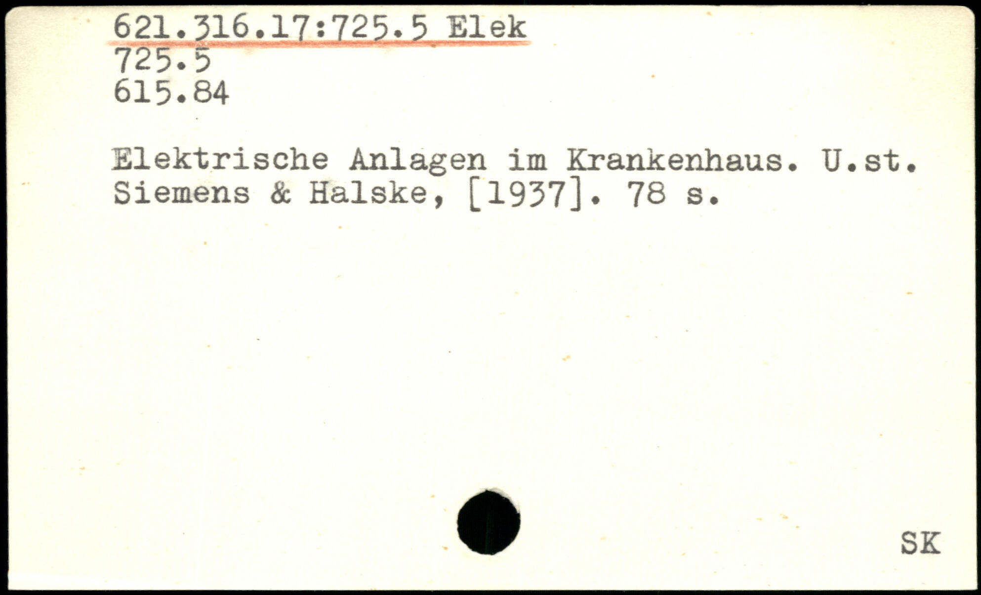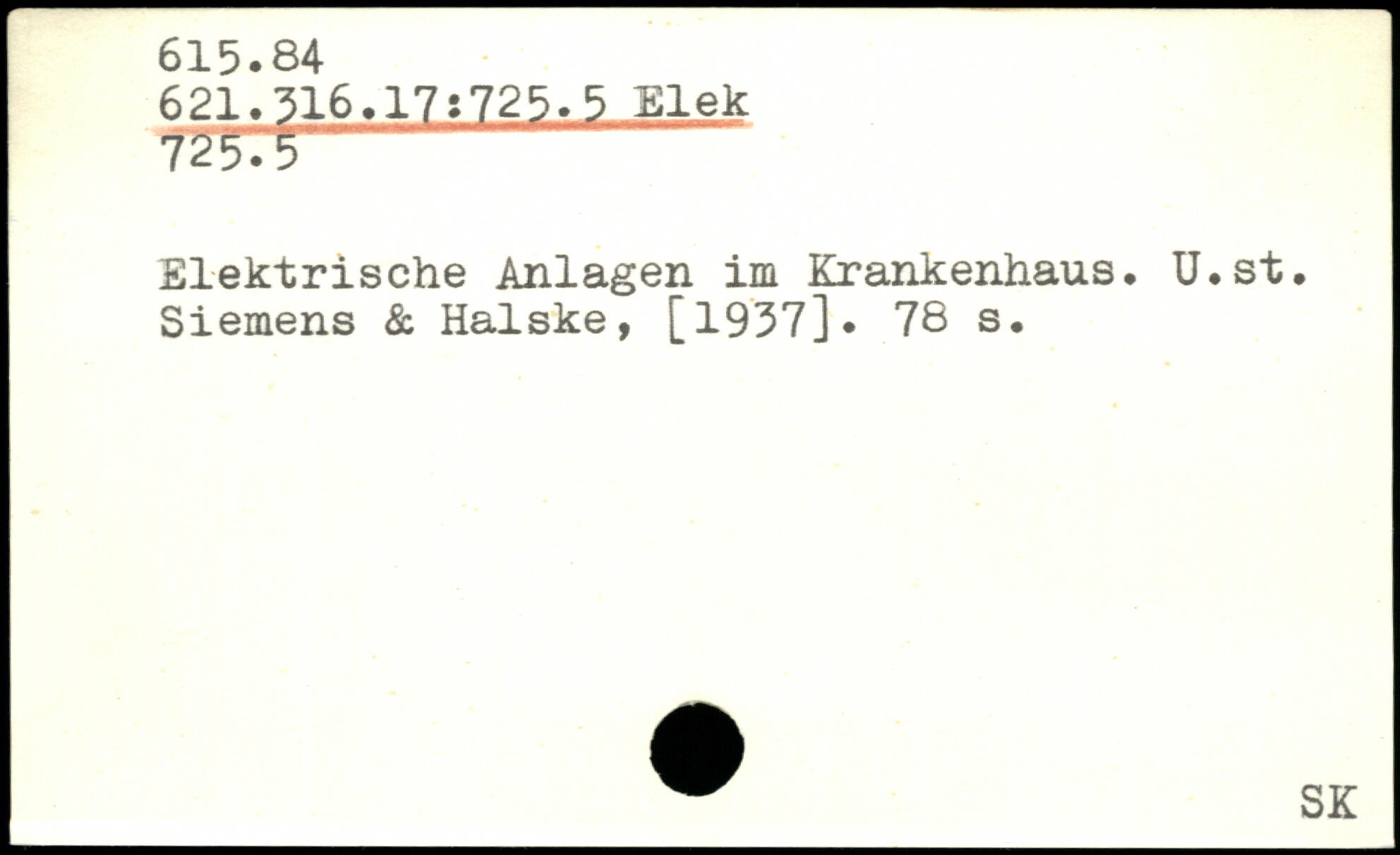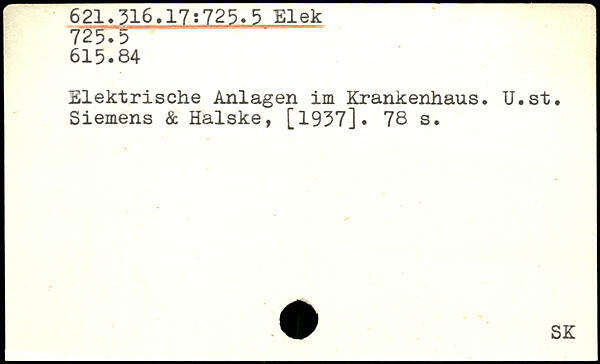 Elektrische Anlagen im Krankenhaus. U.st. Siemens & Halske, [1937].