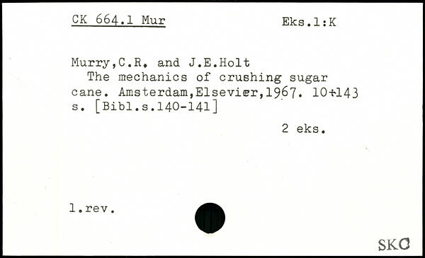 Murry,C.R, and J.E.Holt The mechanics of crushing sugar cane.
