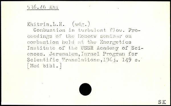 Combustion in turbulent flow. Proceedings of the Moscow seninur on combustion held at the Energetics Institute of the USSR Academy of Sciences. Jerusalem,!s rae1 Program for Scientific translations,1963.