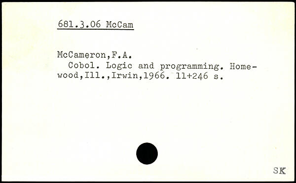Cobol. Logic and programming. Home-wood, 111.,Irwin,1966. II