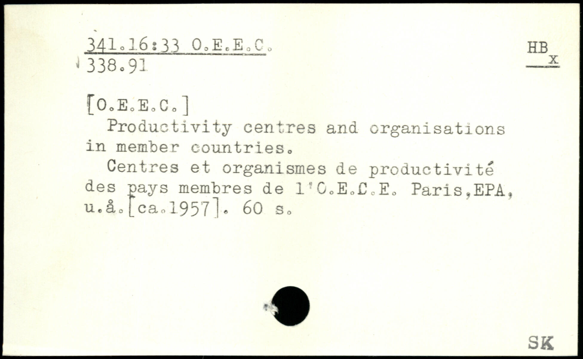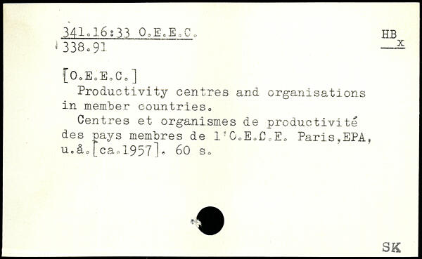 Productivity centres and organisations in member countries, Centres et organismes de productivité des pays membres de 1fGoEoC.Ec Paris,EPA, u.â0 [caol.957].