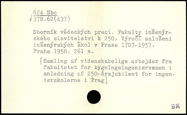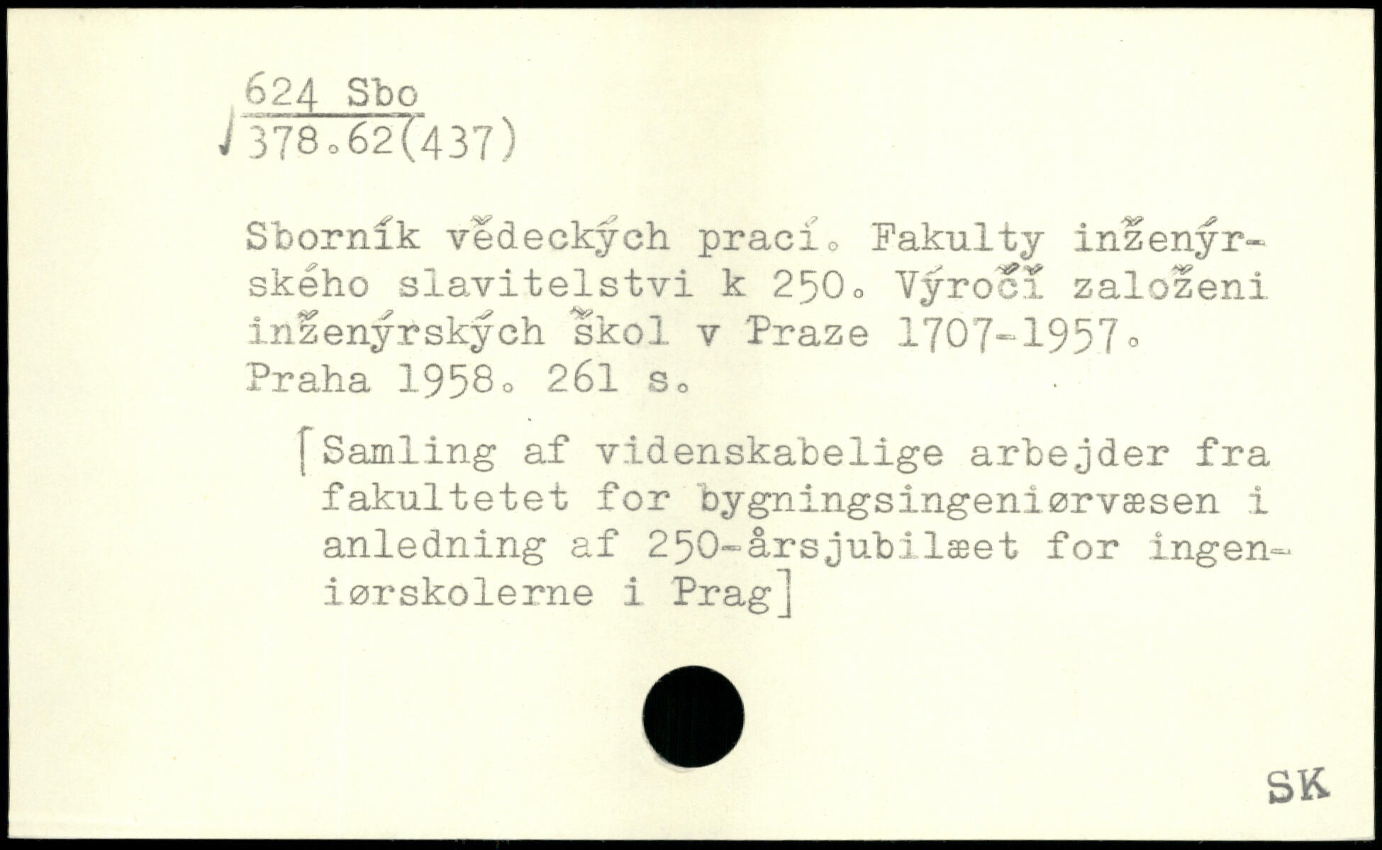 Sbornlk vedeckych pracio Fakulty inzenyr-ského slavitelstvi k 2500 Vyroci zalozeni inzenyrskych skol v Praze 1707-1957.