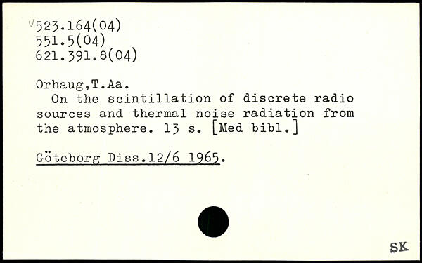 OrhaugjT.Aa. On the scintillation of discrete radio sources and thermal noise radiation from the atmosphere.