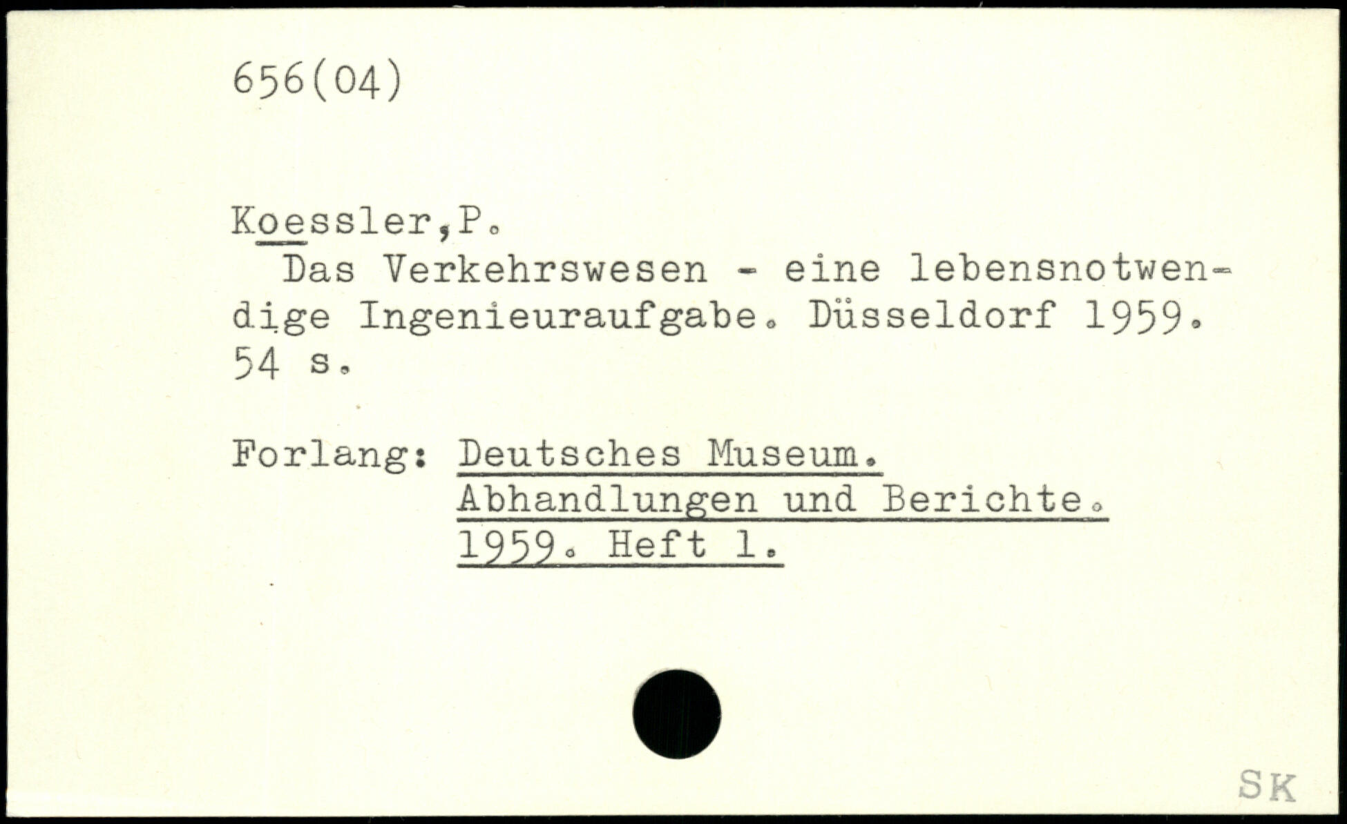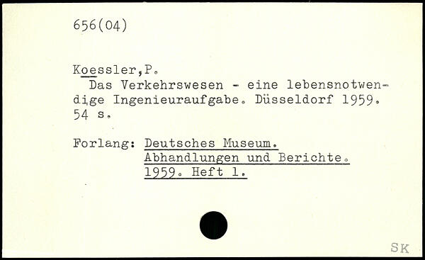 Das Verkehrswesen - eine lebensnotwendige Ingenieuraufgäbe, Düsseldorf 1959