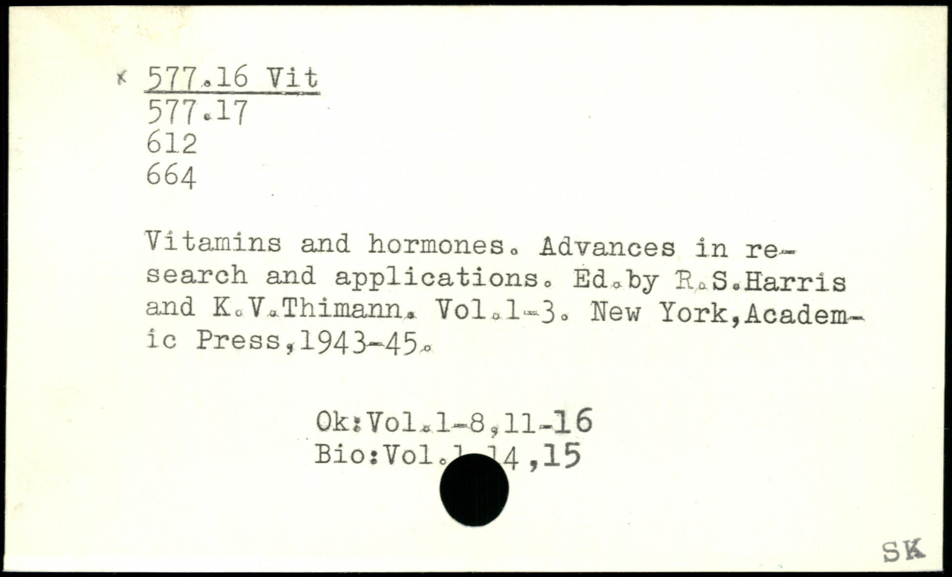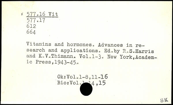 Yitamins and hormones, Advances in research and applications, Ed^by HaS.Harris \ and KoVaThimann. Yolol—3.