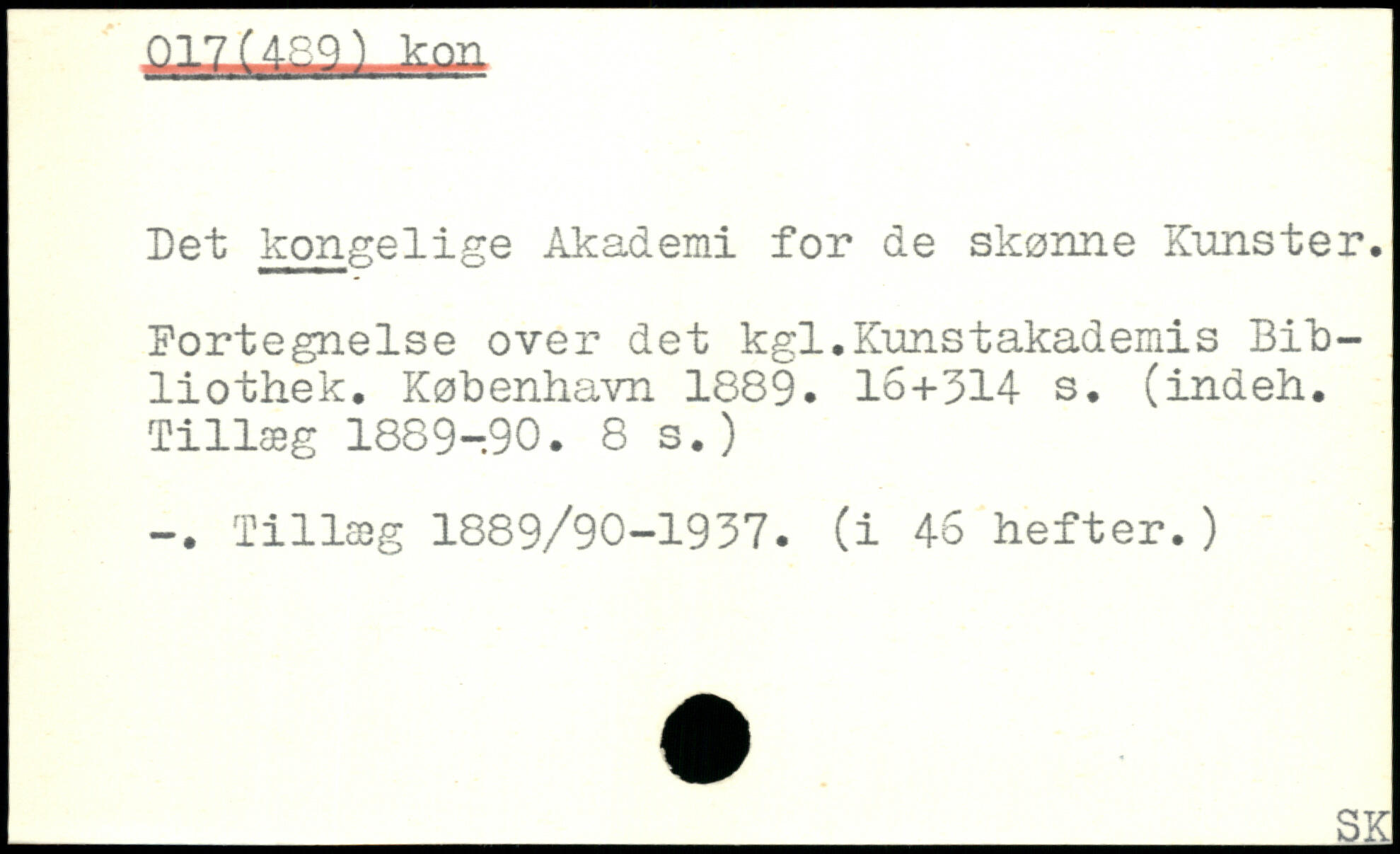 Det kongelige Akademi for de skønne Kunster. Fortegnelse over det kgl.Kunstakademis Bibliothek.