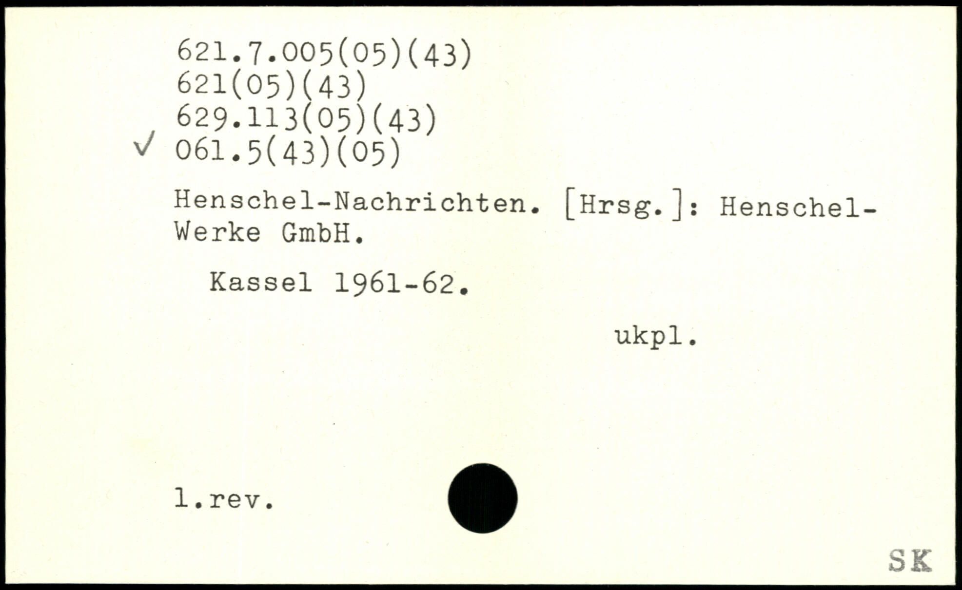 Hensohel-Nachriohten. [Hrsg.]: Henschel-Werke GmbH. Kassel 1961-62. ukpl.