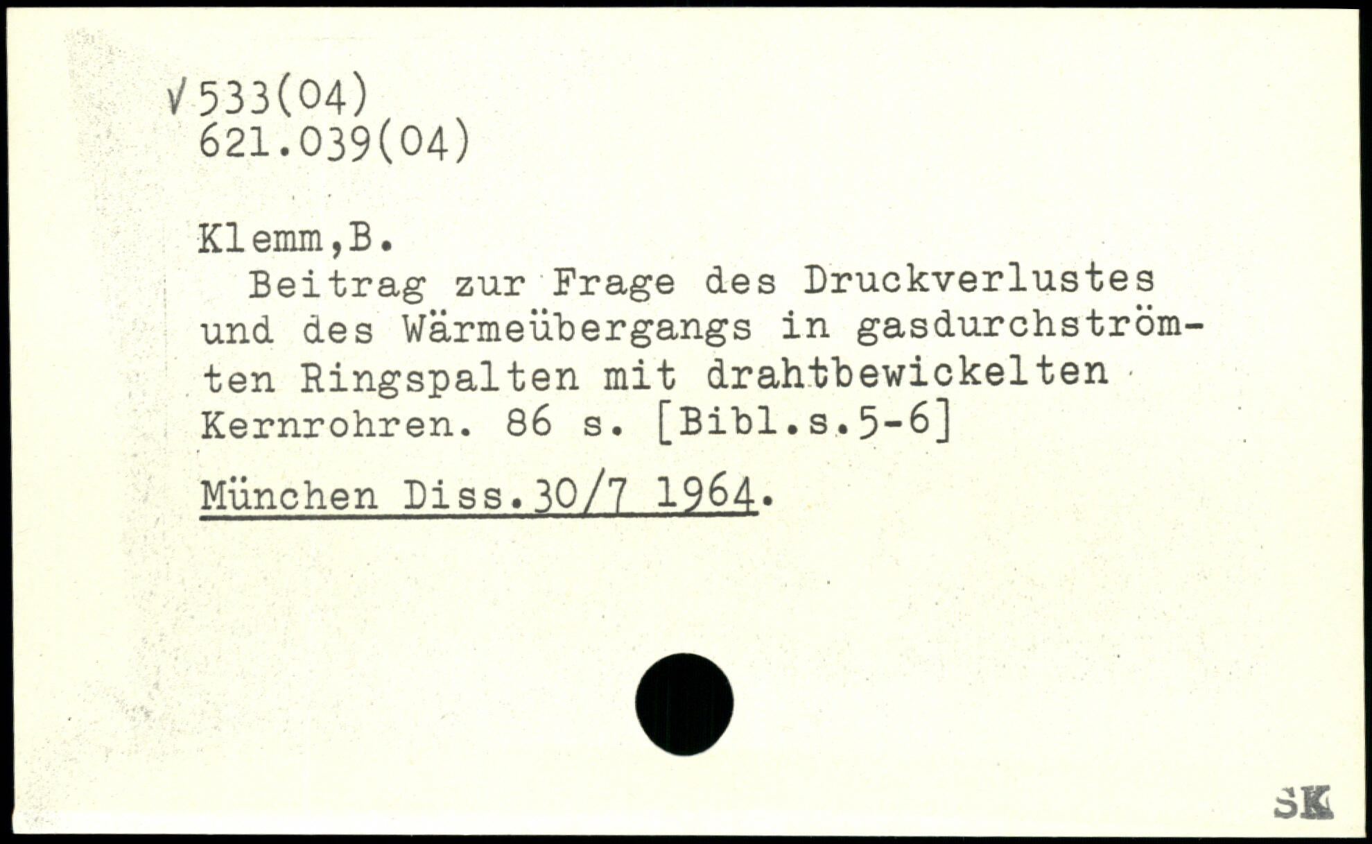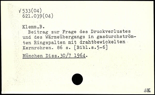 Beitrag zur Frage des Druckverlustes und des Wärmeübergangs in gasdurchström-ten Ringspalten mit drahtbewickelten Kernrohren.