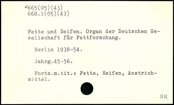 Fette und Seifen, Organ der Deutschen Gesellschaft für Fettforschung