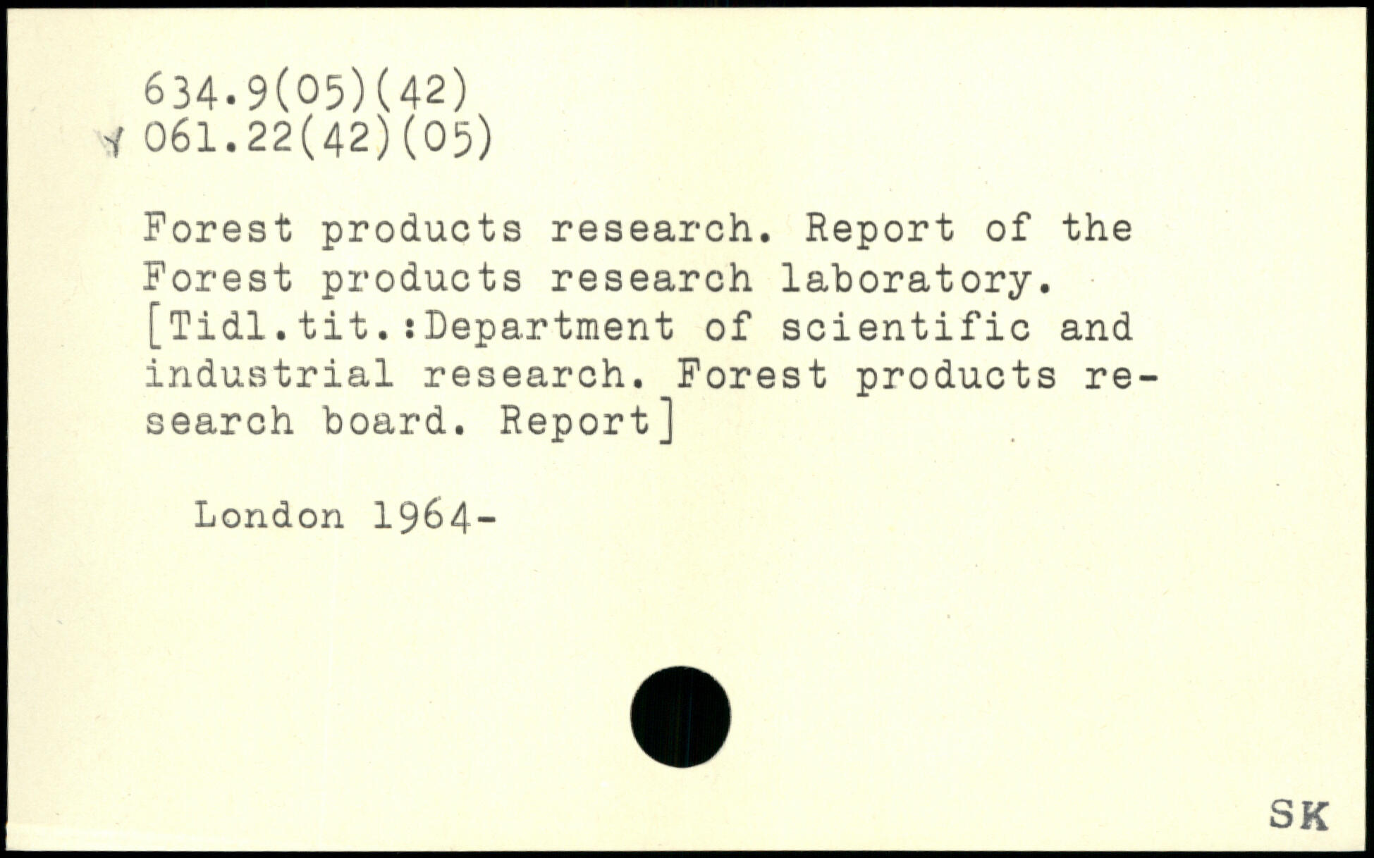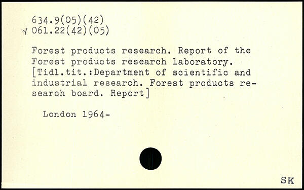Forest products research. Report of the Forest products research laboratory. [Tidl.titDepartment of scientific and industrial research. Forest products research board. Report] London 19&4-