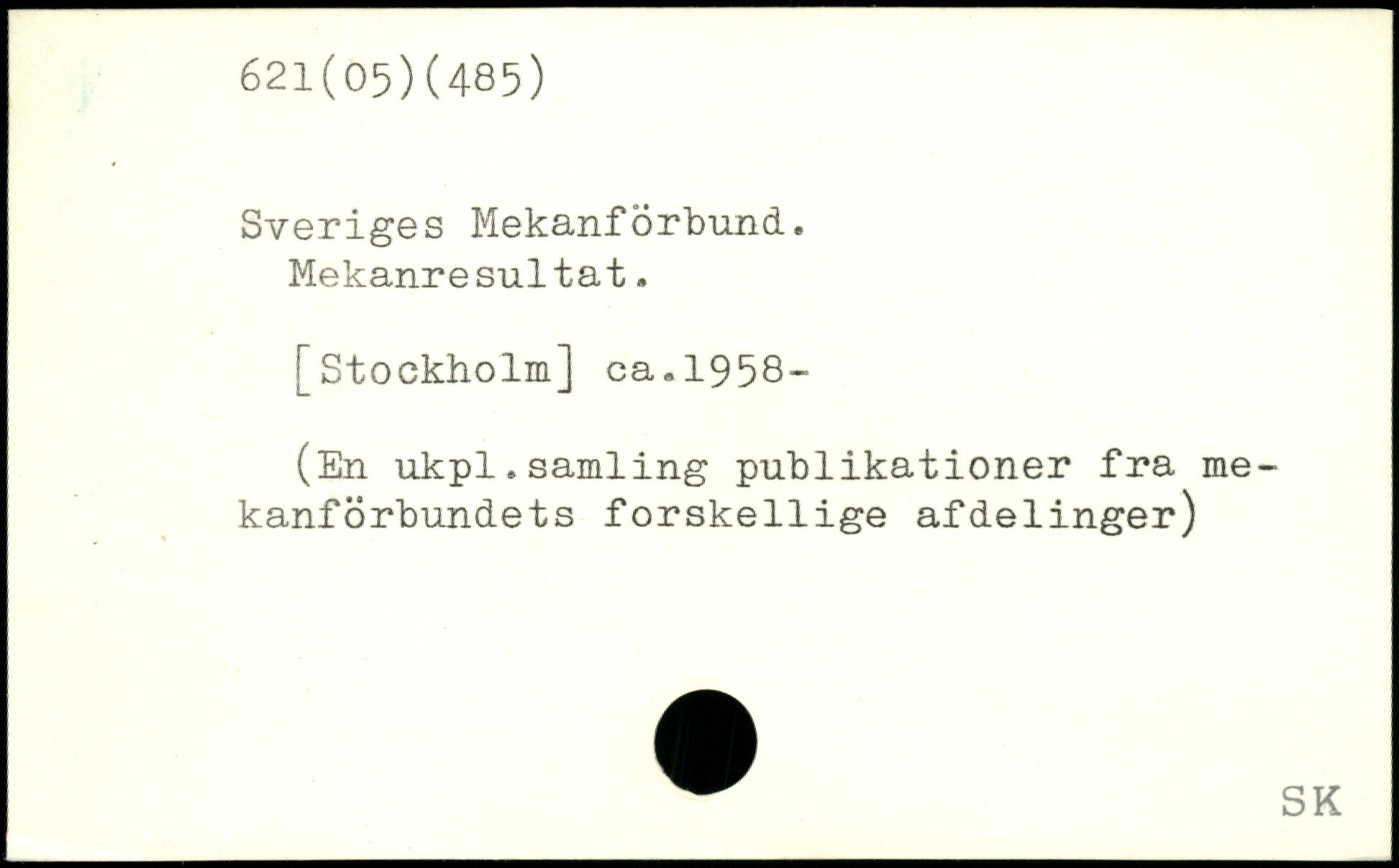 Sveriges Mekanforbund. Mekanresultat.
