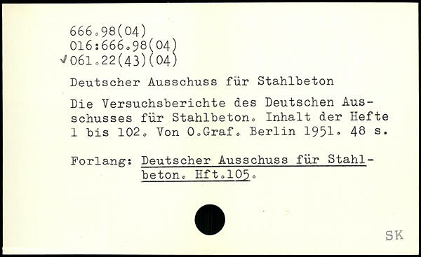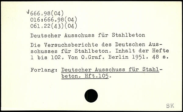 Deutscher Ausschuss für Stahlbeton Die Versuchsberichte des Deutschen Ausschusses für Stahlbeton.. Inhalt der Hefte 1 bis 102o Von 0oGrafo