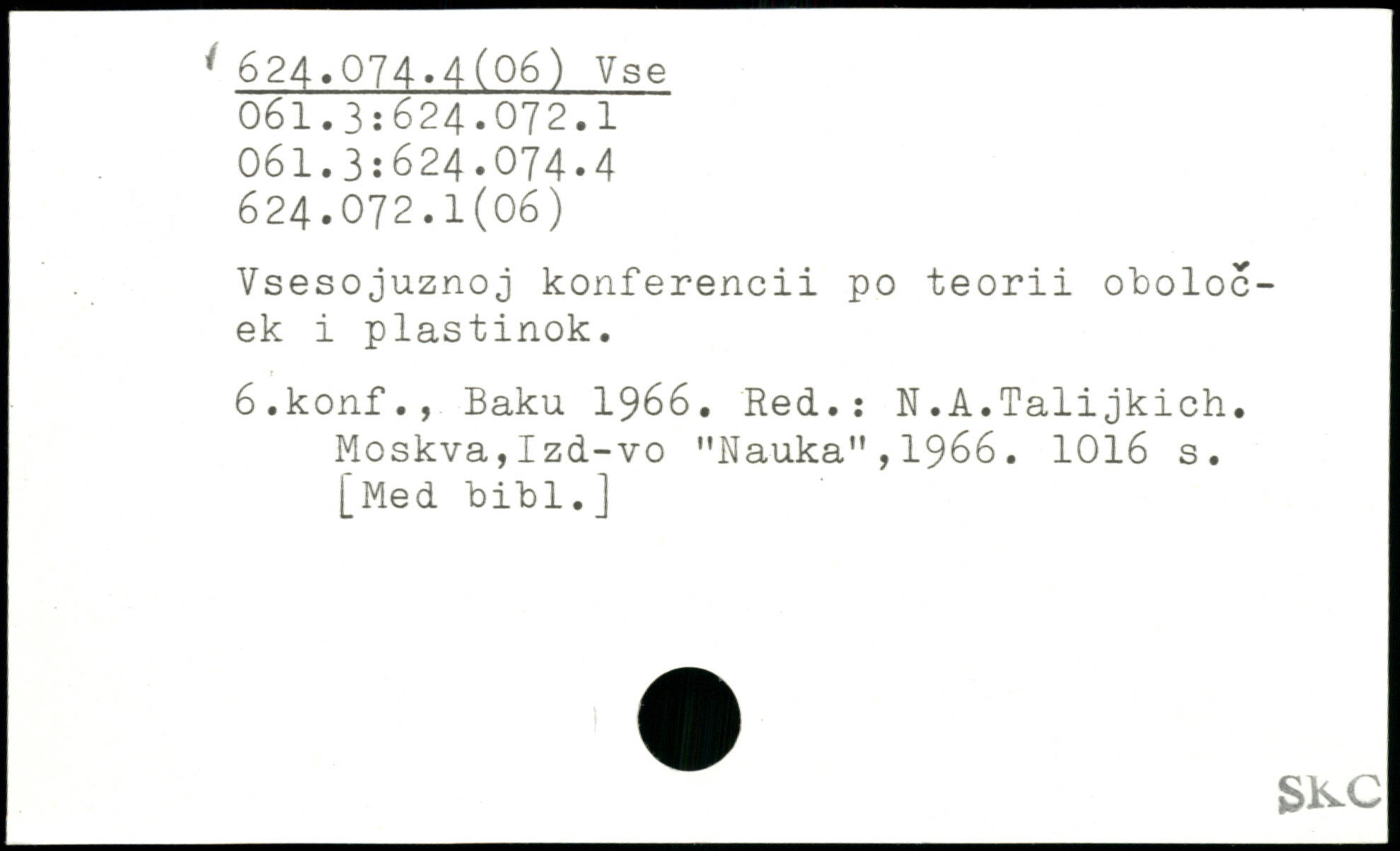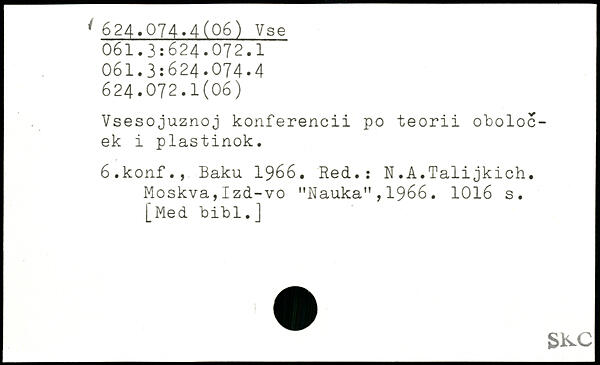 Vsesojuznoj konfereneii po teorii oboloc-ek i plastinok. 6.konf., Baku 1966. Red.: N.A.Talijkich. Moskva,Izd-vo "Nauka",1966.