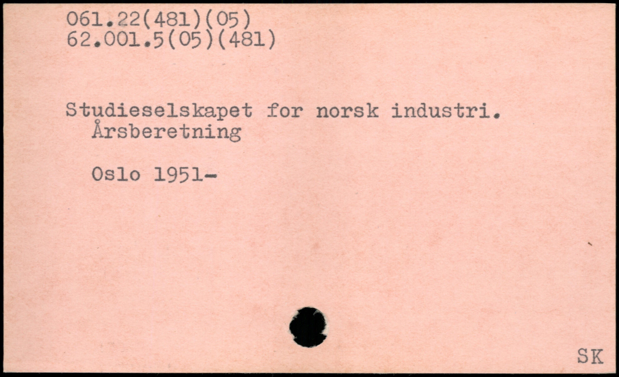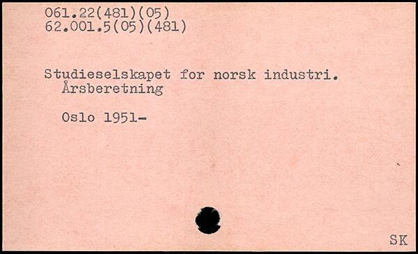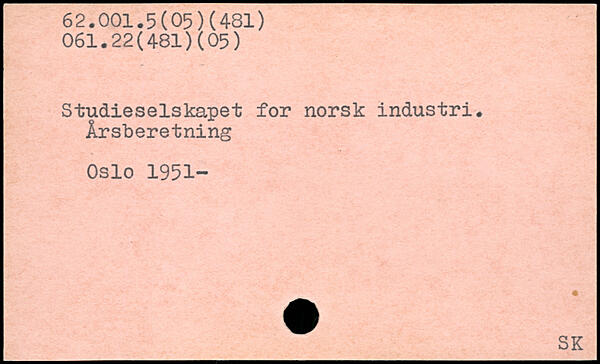 Studieselskapet for norsk industri. Årsberetning Oslo 1951-