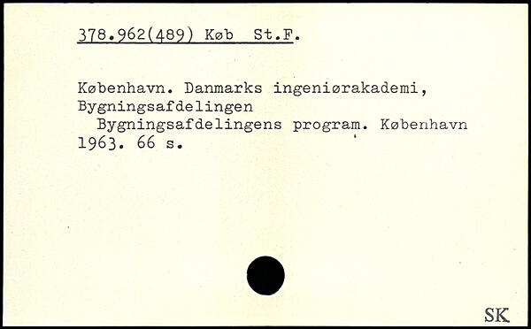 København. Danmarks ingeniørakademi, Bygningsaf delingen Bygningsafdelingens program.