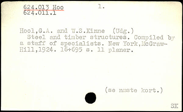 OT.’üll.l ‘ Hool, G-. A. and W.S .Kinne (Udg. ) Steel and timber structures. Compiled by a staff of specialists.