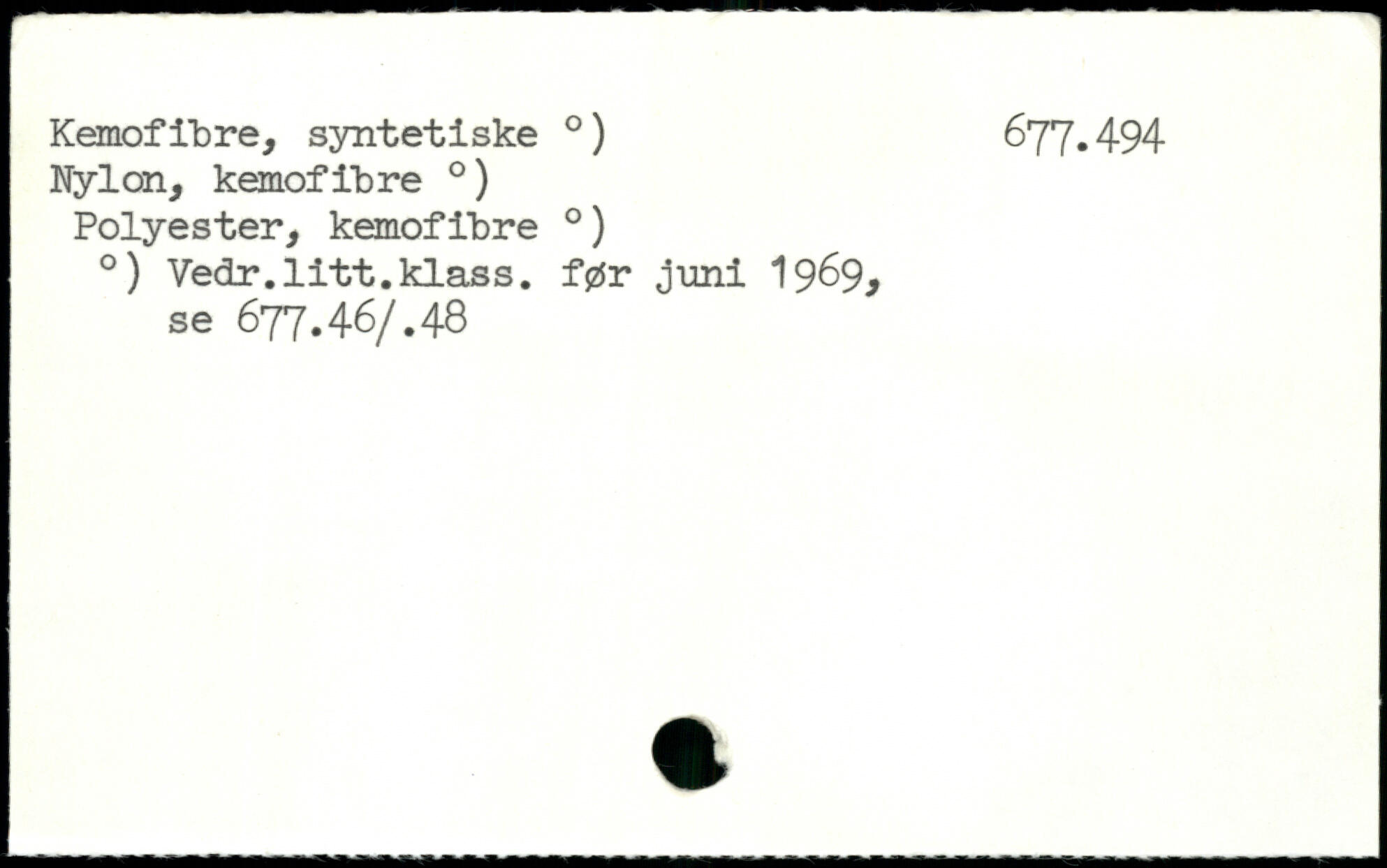 Kemofibre, syntetiske .) 677.494 Nylon, kemofibre .) Polyester, kemofibre .) .) Vedr.litt.klass. før juni 1969. se 677.46/.48