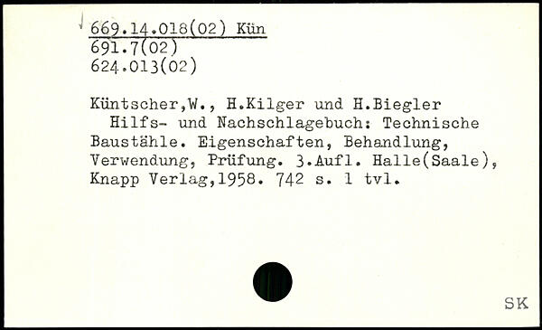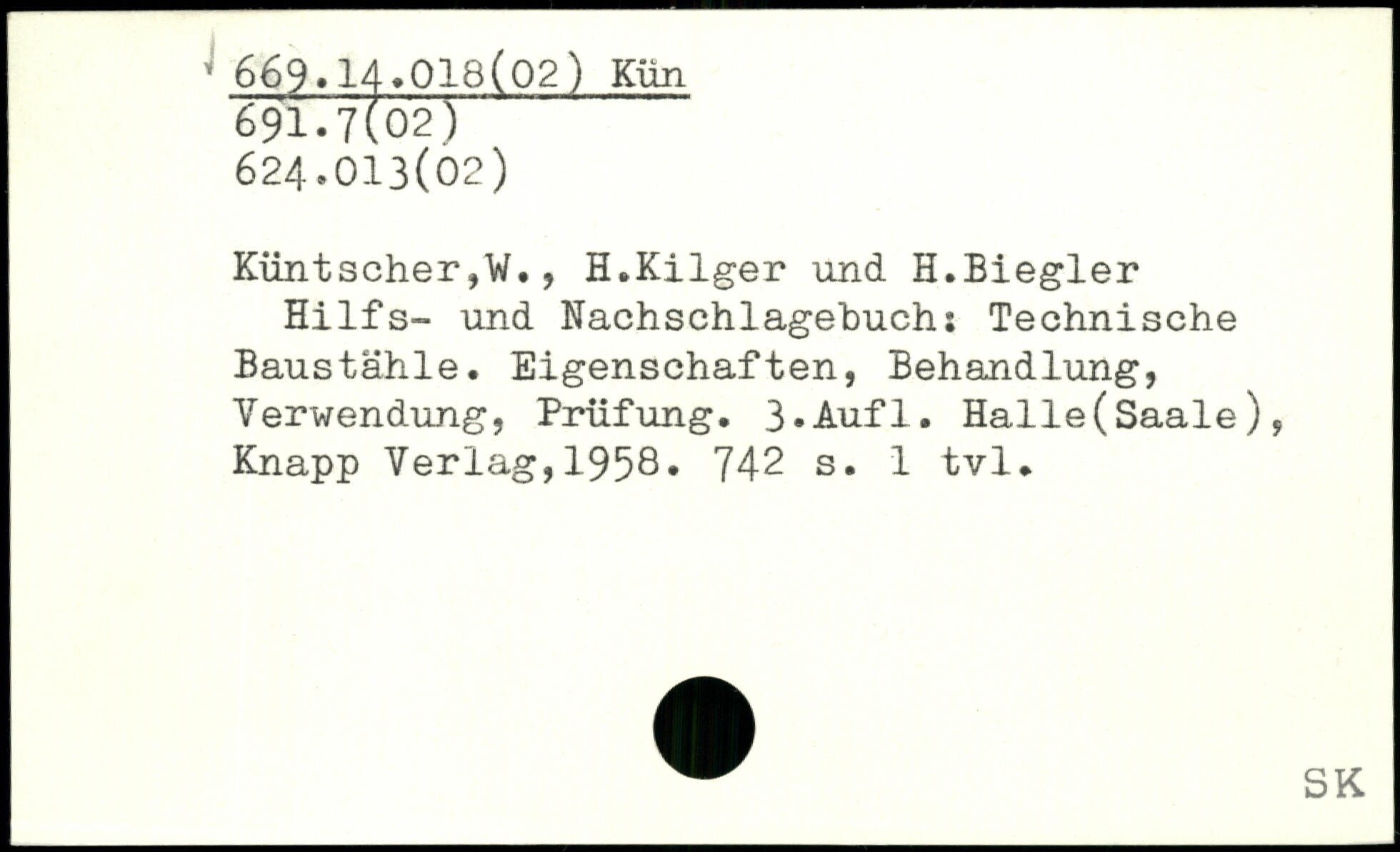 Küntscher,W., H.Kilger und H.Biegler Hilfs- und Nachschlagebuch: Technische Baustähle. Eigenschaften, Behandlung, Verwendung, Prüfung.