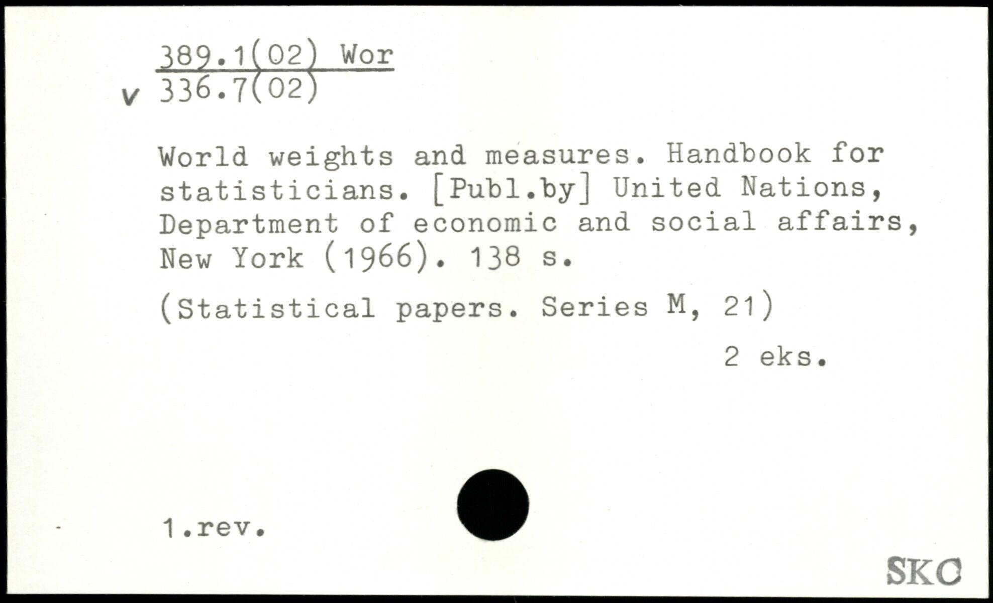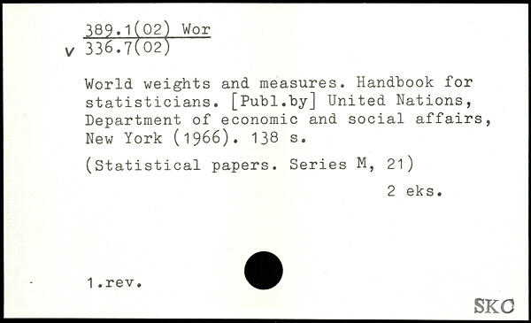 World weights and measures. Handbook for statisticians.