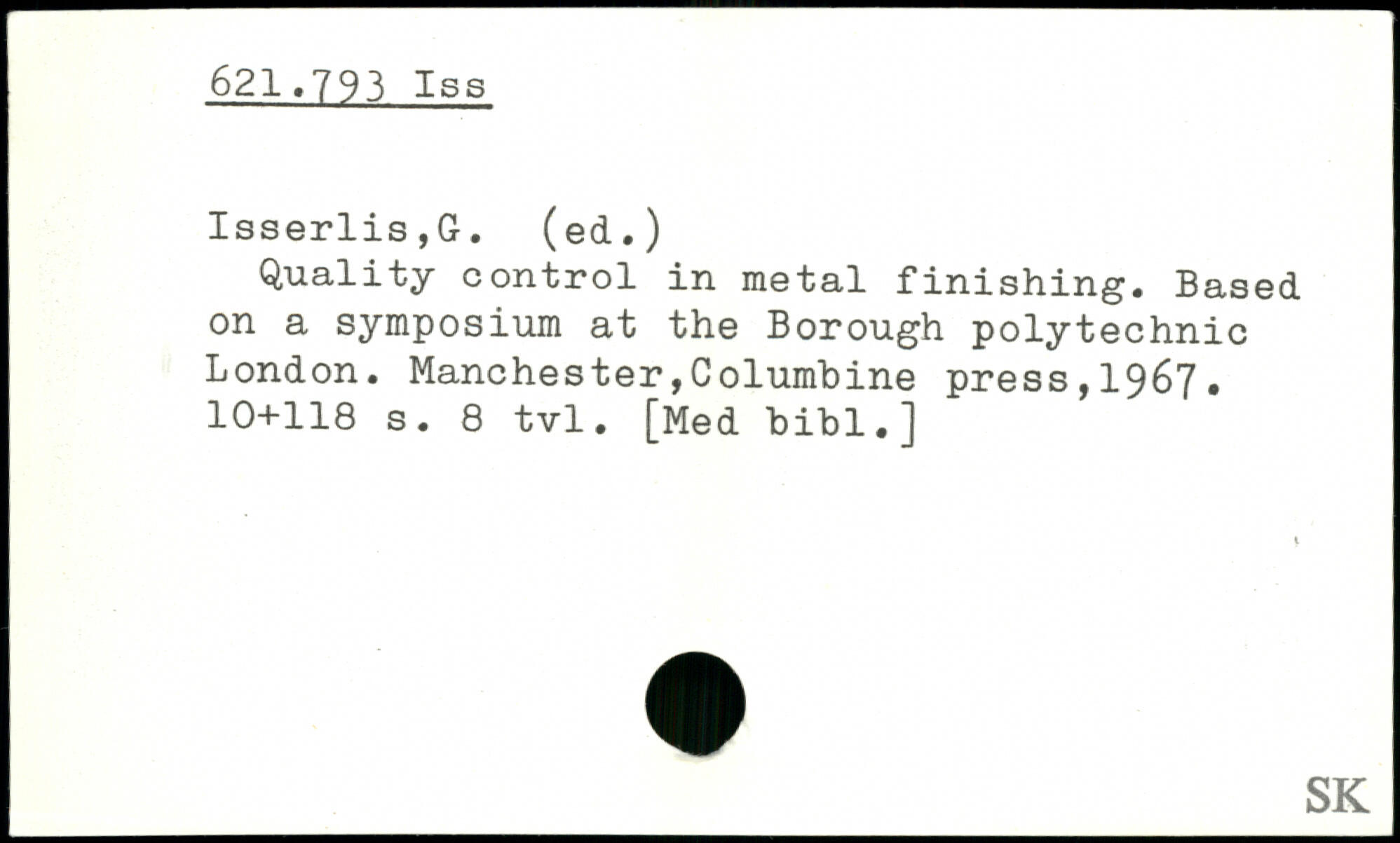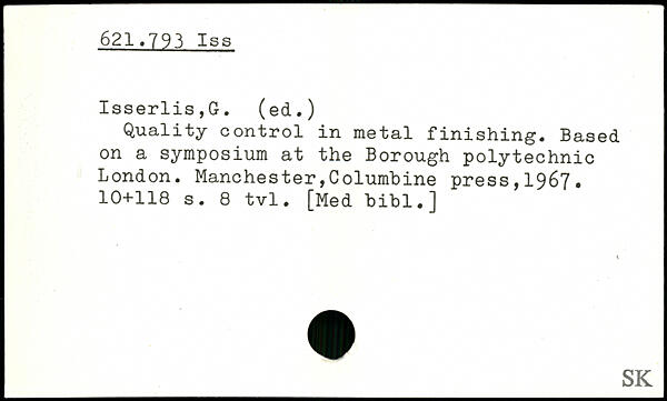 Quality control in metal finishing. Based on a symposium at the Borough polytechnic London.