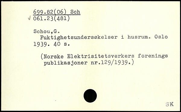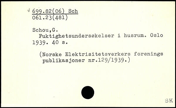 Fuktighetsundersøkelser i husrum. Oslo 1939.