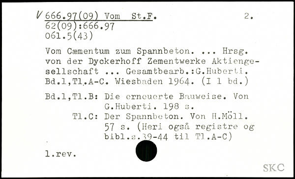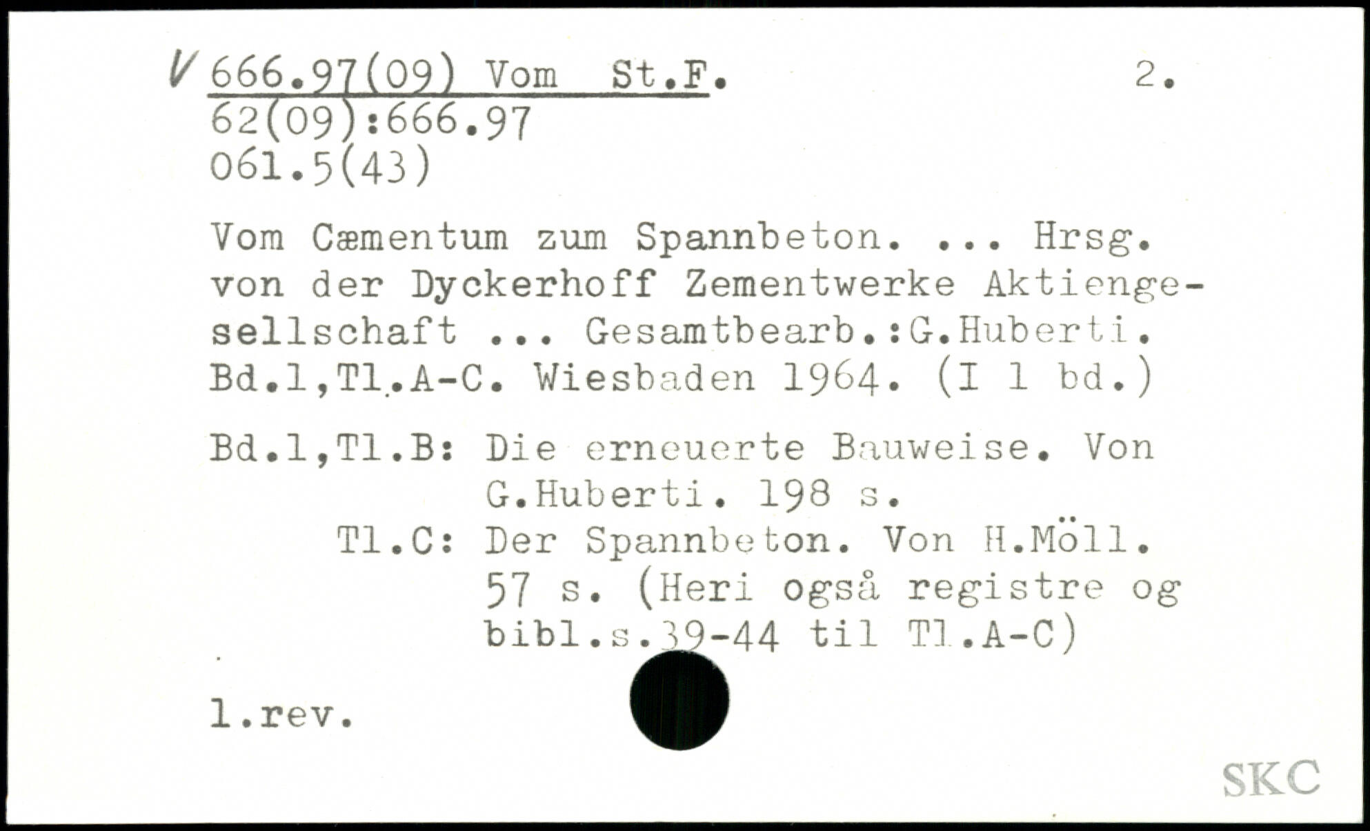 Vom Cæmentum zum Spannbeton. ... Hrsg, von der Dyckerhoff Zementwerke Aktiengesellschaft ... Gesamtbearb.sG.Hubert!. Bd.l,TI..A-C. Wiesbaden 1964, (i 1 bd.) Bd.ljTl.Bi Die erneuerte Bauweise. Von G.Hubert!.