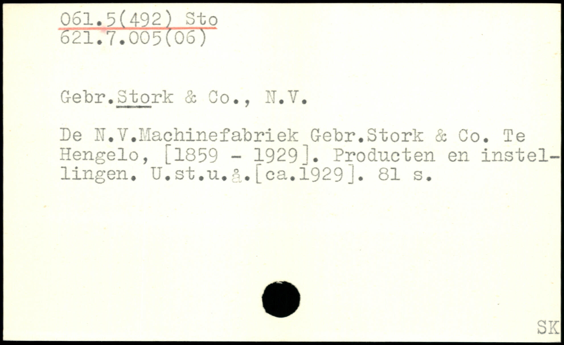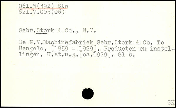 Se tir. Stork & Co., II.Y. De N.V.Machinefabriek Gebr,Stork & Co. Te Hengelo, [1859 - 1929]. Producten en instel-lingen. U.st ,u.§,[ca.1929].