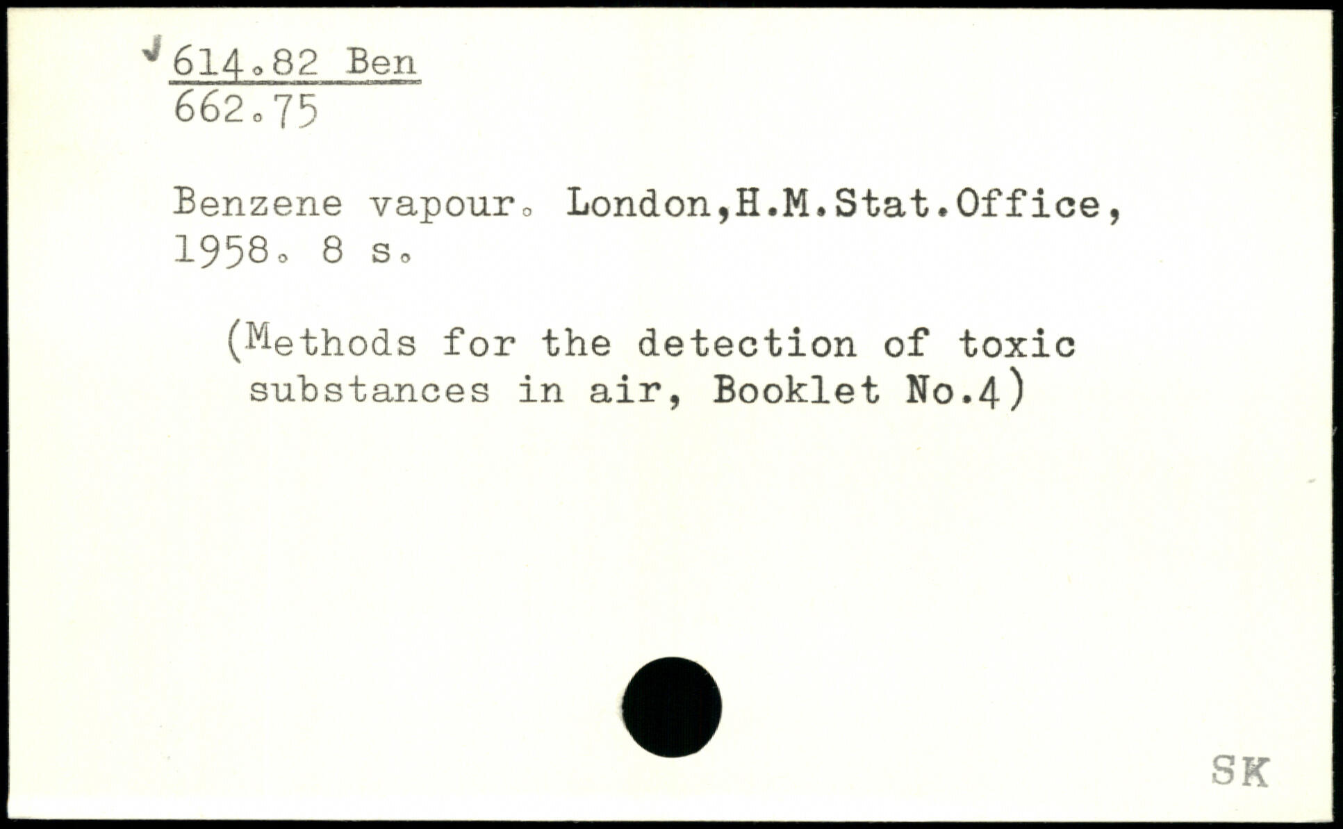 Benzene vapouro London,H.M.Stat.Office, 1958o