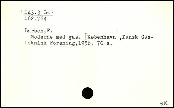 Moderne med gas. [København],Dansk Gasteknisk Forening,1956.